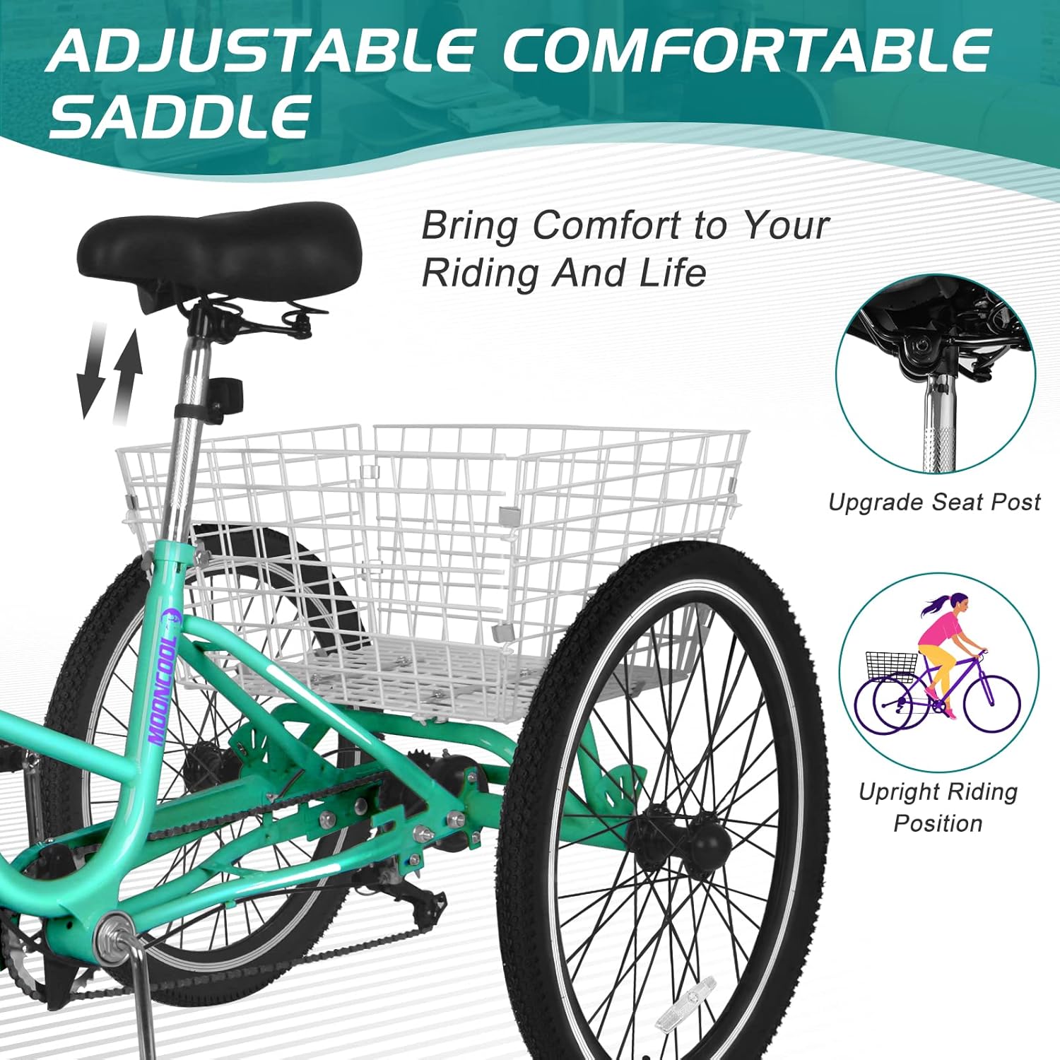 About this item 【FOLDING ADULT TRICYCLES】- With a twist and pull of a quick release lever Our tricycle can be folded in half easily and efficiently for easy move and storage. This folding tricycle will be a practical tool in your daily life; 【SIZE REFERENCE】-20" wheel tricycle suitable for rider height: 4'8"-5'4"; 24" wheel tricycle suitable for rider height: 4'11"-5'9"; 26" wheel tricycle suitable for rider height: 5' 3"-6'2". 【7-SPEED Derailleur】- Equipped with 7-speed trigger shifters and derailleur. Provides a wide range of gears and smooth shifting, making your riding safer and more enjoyable; 【STURDY 3 WHEEL DESIGN】-The tricycle is made of high-quality steel and can support a total weight of 320 pounds for the rider and cargo. In addition to the practicality of the tricycle, the tricycle design ensures safe and stable driving, and the frame will remain strong and stable; 【LARGE CAPACITY BASKET】- Our tricycle has a large rear basket, which is convenient for shopping and loading enough things. Perfect for leisure, shopping, exercise or any time/place you want;