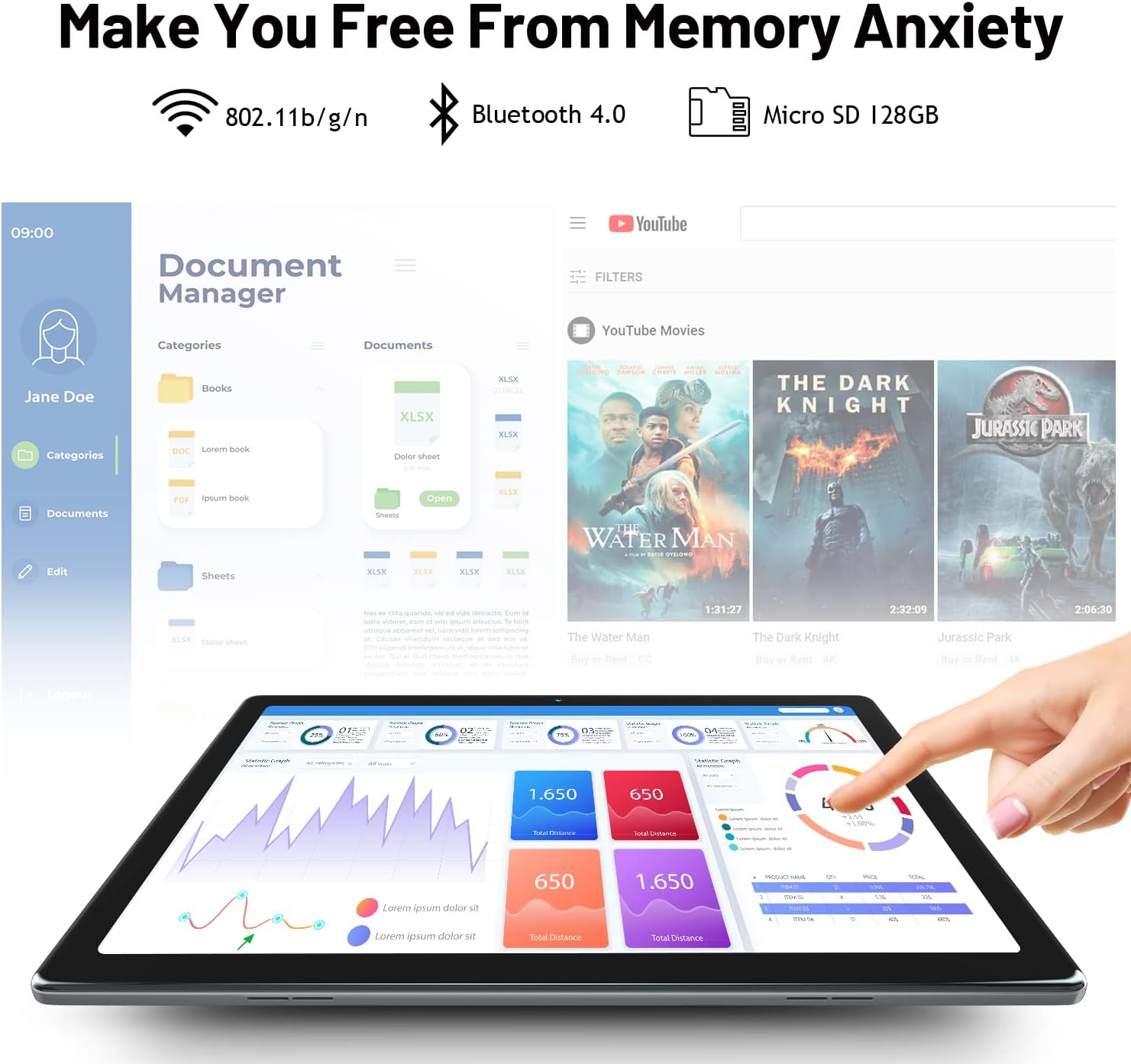✅[High-performance Tablet PC] Android 10.0 Tablet, rid of unexpected ads and have Full access to Google Play; 2GB RAM and Quad-Core Processor speed up multitasking. ✅[Free From Memory Anxiety] Okaysea Tablet loaded with 2GB RAM & 32GB ROM exanadable storage (up to 128GB). ✅[Long Battery Life] 10-Inch Tablet With a 6000mAh Ultra-large battery, allows to enjoy up to 8 hours It is a really good companion for your leisure and entertainment. ✅[10 INCHES IPS Display] Android Tablets Use a 1280*800 HD IPS display can present clearer picture effects and richer colors. With dual camera, 128GB expandable, WiFi support. ✅[After-sales service] Offer a 1-year return and exchange service. comes with a USB Type-C cable, A Charging brick. To ensure the quality of our service, please contact us if you have any questions about this tablet.