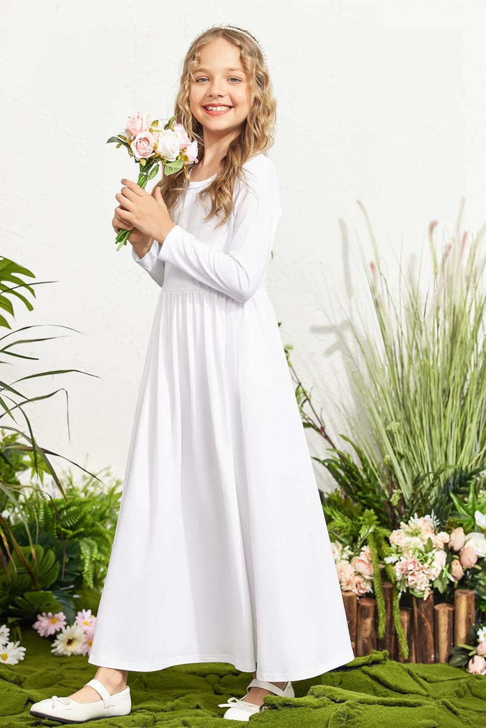 Arshiner Girls Long Sleeve Solid Loose Casual Maxi Dress with Pockets 5-13 Years