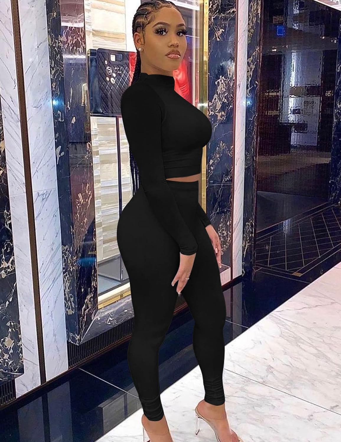 90% Polyester and 10% Spandex Pull On closure Machine Wash This workout leggings set is light weight, high stretchy, super soft, not see through, comfy This jogger sets feature crop top and legging pants, mock neck, long sleeve, the active wear 2 piece outfits is high waisted with elastic waistband, bodycon fitted. The athletic clothing is a must have in your wardrobe, It hugs all your curves so sexy, perfect for spring, fall and winter The two piece casual matching sets is suitable for gym, work out, running, walking, sports, jogging, bike, going out, club, vacation, outdoor, travel, shopping, exercise, street, daily, home and other special occasions. Style this tracksuit sets with sport shoes or heel, you'll look more energetic and stylish Size: S=USA 4-6, M=8-10, L=12-14, XL=16-18, Size for reference only, please check the size chart carefully before you purchase Washing Care: washing by hand or machine, do not bleach