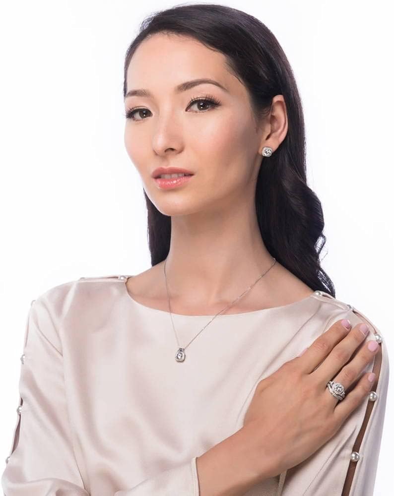 【METAL】 This halo art deco wedding engagement 2 piece ring set is crafted with fine 925 sterling silver, plated with rhodium to enhance shine and durability. Nickel free for sensitive skin and won't turn your skin green if properly cared for. SIZING TIPS: This ring's band width is wide, so we suggest you choose a ring size 1/2 or 1 size larger than your standard ring size to make sure the ring will fit comfortably. 【STONE】 Main stone features 1.25 carat round cubic zirconia (7mm) in prong setting. Accented with 0.93 ct.tw step-cut trapezoid and round CZ (5mm - 1.5mm) in prong setting. 【MEASUREMENTS】Ring measures 7mm in height. Band measures 4.25mm in width. This 2 piece art deco halo ring set will take your breath away with its impeccable brilliance and vintage style allure. 【FREE RETURN & WARRANTY】 Free return within U.S. Warrants against defects in materials and workmanship for 90 days; excludes general wear & tear and misuse. ? This ring is beautifully packaged in a free gift box, making it a perfect bridal wedding engagement rings for her or a romantic jewelry gift for Valentine's Day and anniversary.