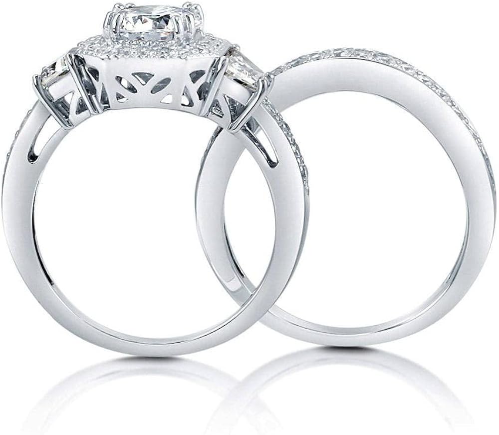 BERRICLE Sterling Silver Halo Wedding Engagement Rings Round Cubic Zirconia CZ Art Deco Ring Set for Women, Rhodium Plated Size 4-10