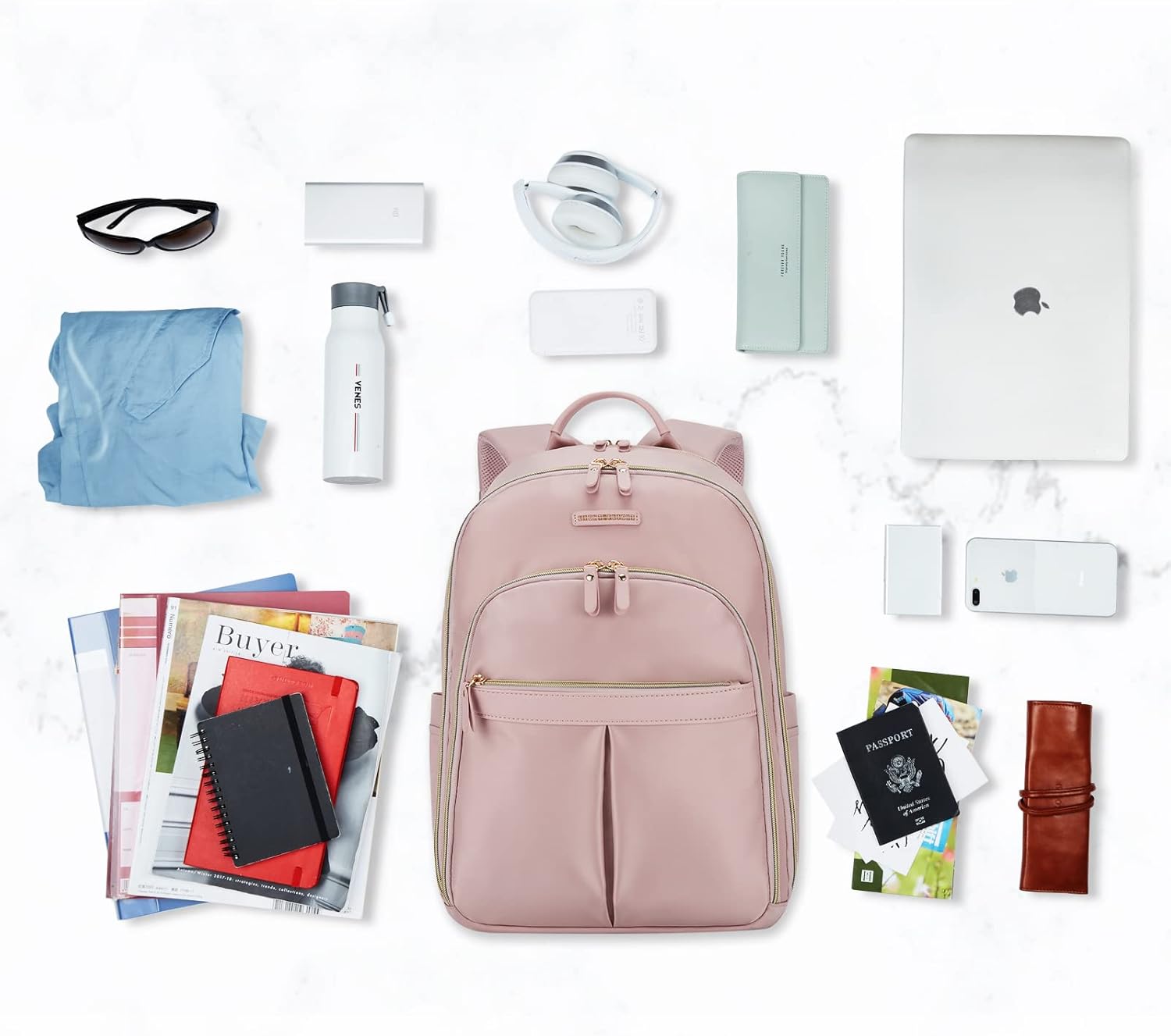 Laptop Backpack for Women fits 15.6'' Computer School Backpack with USB Charging Port, for Book Bag Work College Business Travel,Pink
