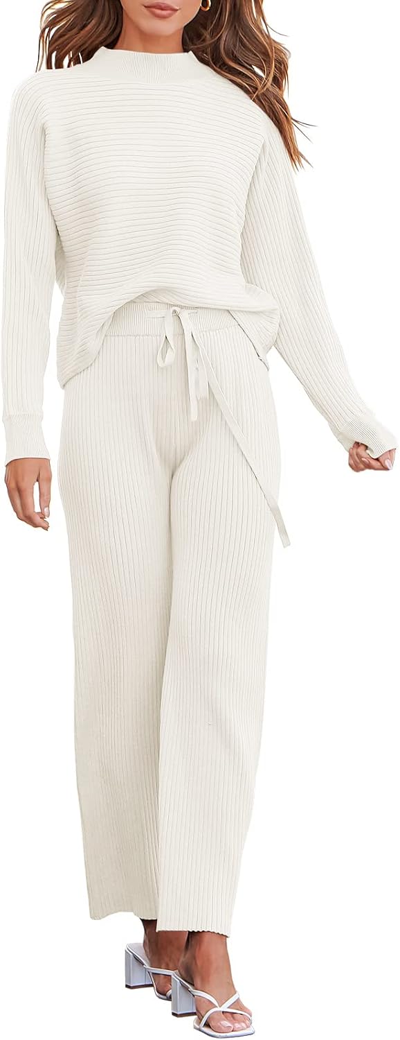 50% Viscose, 30% Nylon, 20% Polyester Dry Clean Only นบ Size - S=US(4-6),M=US(8-10),L=US(12-14),XL=US(16-18) ,see details in rich description. Wash - Hand wash / Dry clean / Do Not Bleach / Dry Flat / Do not iron. Features - Such a cute 2 piece outfit!Features collar round neckline,batwing long sleeve pullover crop top,wide straight leg pants,pockets,ribbed knit fabrication. Occasion - This two-piece sweater for women perfect for casual events and lounging at home, vacation, casual outdoor, party, cocktails, weddings, to the farmers market, date night outfit, daily life. Style - An ordinary sneakers can complete a clean look in daily life, or you will look cute with jacket, coat, cardigan in a snowy day.