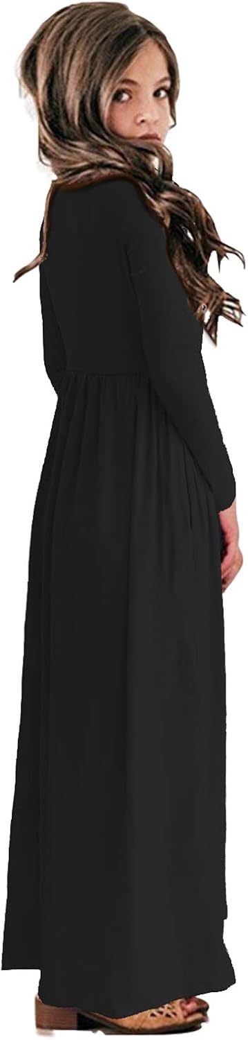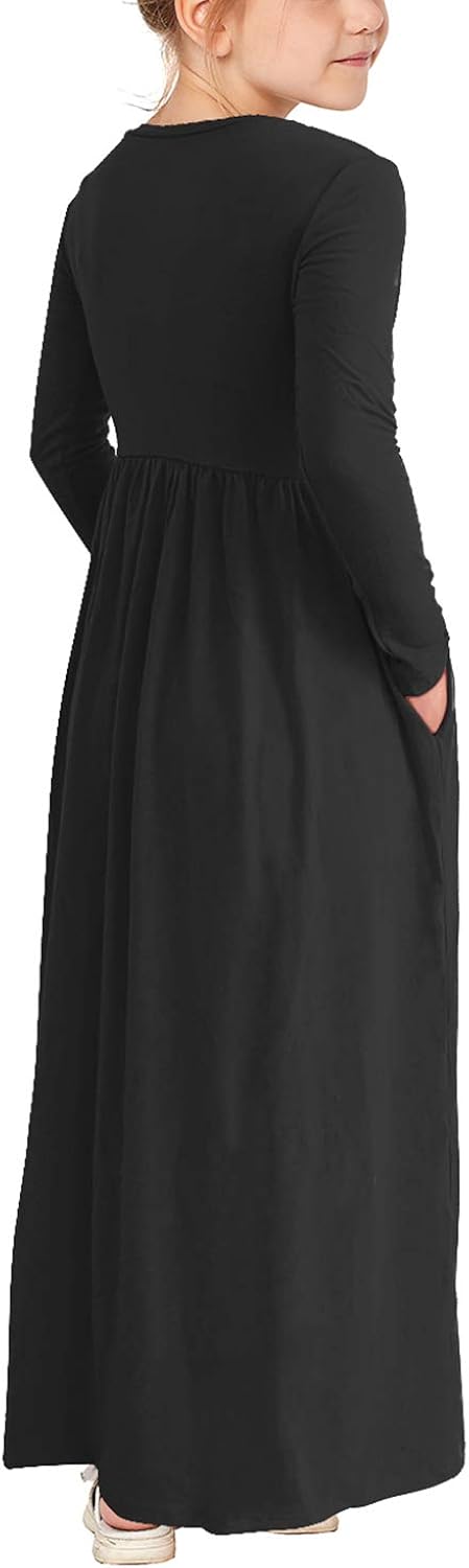 95% Polyester, 5% Spandex Imported Pull On closure Machine Wash Material: Made of 95% polyester, 5% spandex. Soft, lightweight and comfortable dress for girls Design: Casual style, short sleeves/long sleeve, round neck, two side pockets, ankle length, elastic at waist, not lined Size Instruction: Please choose size with our detailed size chart on the last product picture or description before ordering