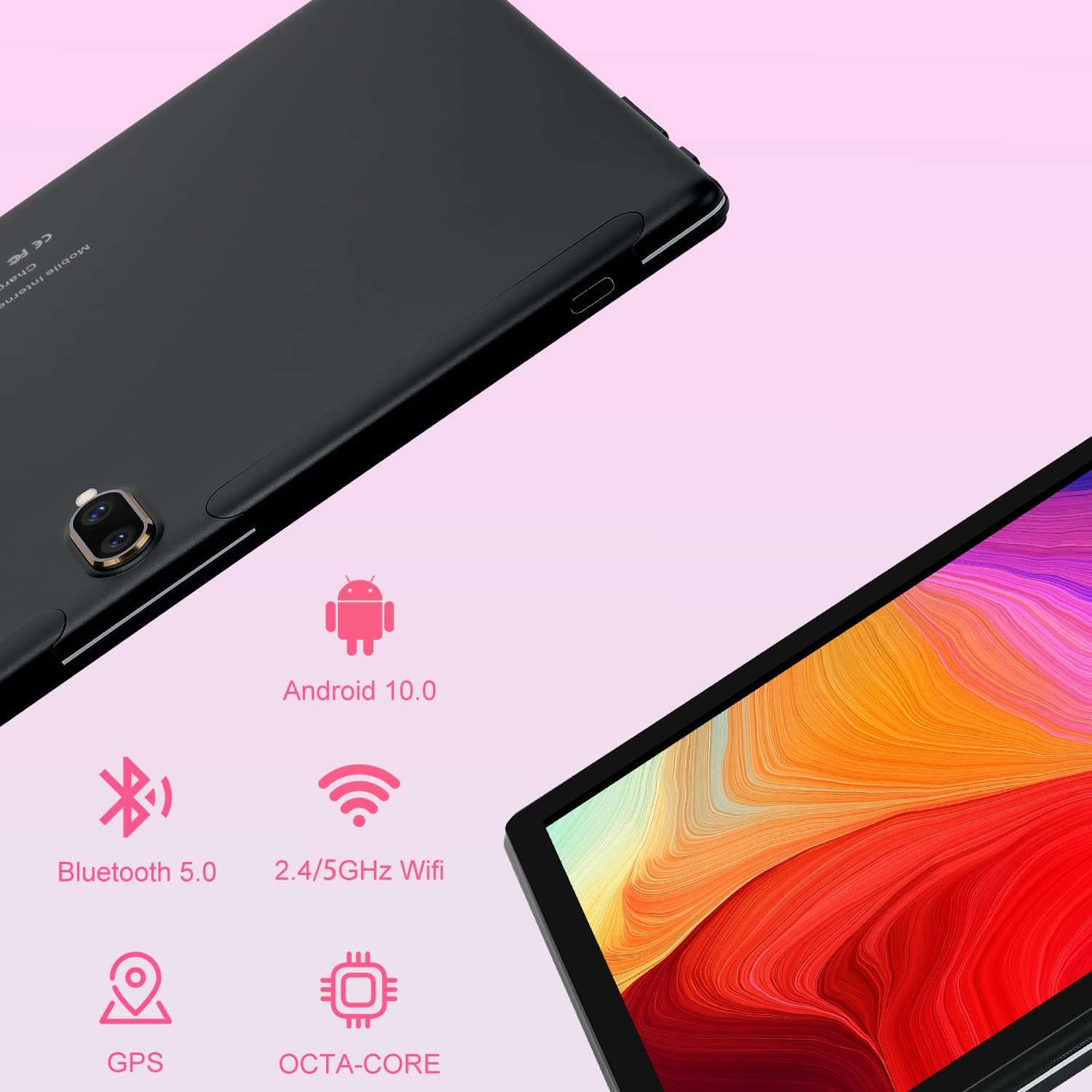 Tablet 10 Inch Android,Android 10.0 inches Tablets Computer 4GB RAM+64GB ROM, 128GB Expand Support, Octa-Core CPU, 13MP/8MP Dual Camera, WiFi, 1080P HD IPS Display, GPS, Bluetooth, Black