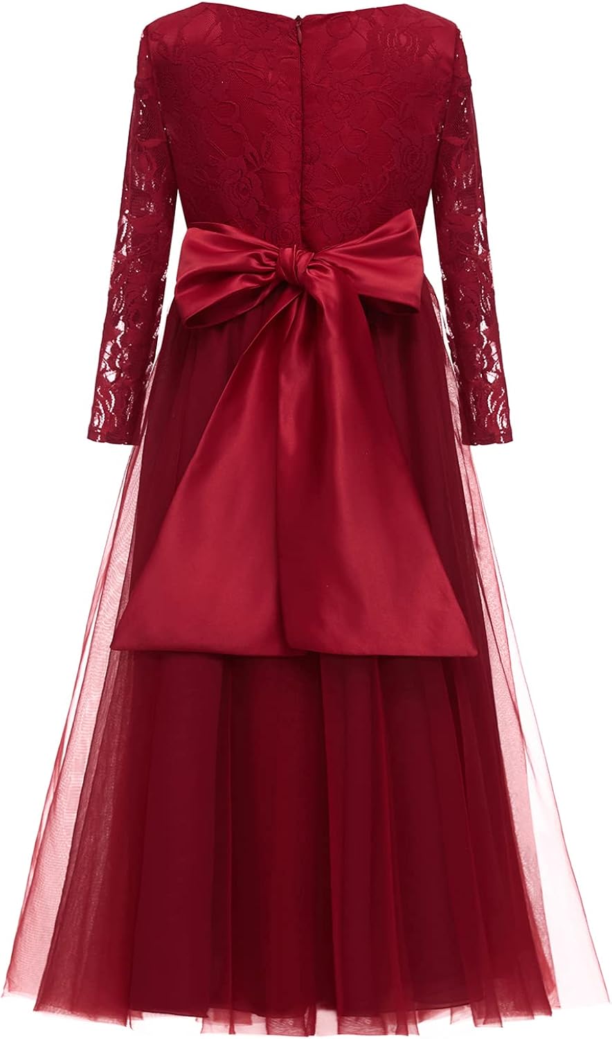 100% Cotton Imported Long-sleeved stunning flower girl Christmas dress Suit for wedding party, father daughter dance ,christmas, baptism, birthday, pageant and other special occasions Made of high quality lace and tulle, soft and comfortable Perfect for dance party, stage performance, easter, festival, holiday vacation, first communion, photo props, family gathering, Valentine's Day, Children's day, etc. please make the measurements before ordering to ensure the correct size