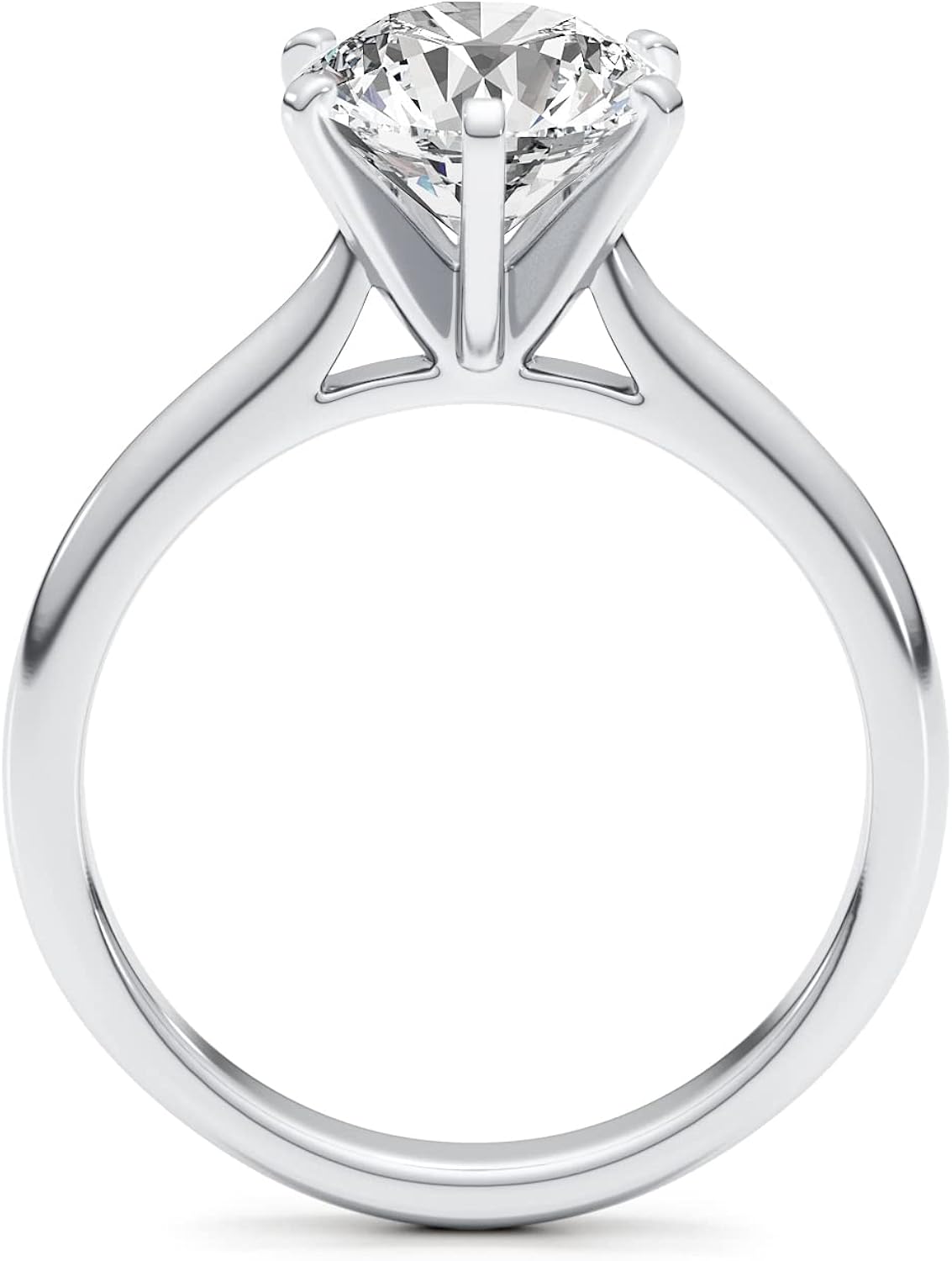 EYE CATCHING LONG LASTING LUSTER - The fine stone used on this luxurious Cemme moissanite Solitaire engagement ring for women will retain their sparkle for the years to come. The ring is made of 14k solid white gold that will surely steal the show BREATHTAKING SHINE AND SPARKLE - The Moissanite center stone dimensions is 8mm Diameter , D-E color which is very colorless and VVS clarity. Equal to 2 Carat Diamond . Moissanites are remarkably similar to natural diamonds and, on the Mohs hardness scale is, at 9.25, the second hardest to diamonds which is a 10 SIMPLE AND ELEGANT GOLD RING - This fantastic band ring is perfect for any age woman. It is suitable for everyday use or special moments, whether you're popping the question or simply looking for a romantic gif. ring sizes between 4.5 to 11 ELEGANTLY HANDCRAFTED - Perfect gift for an Anniversary, Birthday, Engagement, Valentine's Day, Mother's Day, Christmas, Hanukkah, or just any occasion and are a classic gift for any Woman such as a Bride, Bridesmaids, Fiancée, Wife, Girlfriend, Daughter, Granddaughter or even a Grandmother 100 % CUSTOMER SATISFACTION GUARANTEED - USA SELLER Your happiness always comes first for us. We offer a Lifetime Manufacturing Warranty on Jewelry, 30 Day Money Back Guarantee , Glam & Gems Appraisal Card and Glam & Gems gift box.