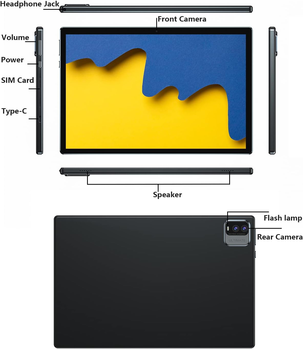 About this item This fits your . Make sure this fits by entering your model number. P.when("ReplacementPartsBulletLoader").execute(function(module){ module.initializeDPX(); }) 【Faster Responsive Performance】10 inch andriod tablet equipped with stable Android 11.0 system,features 1.8 GHz quad-core CPU.support G-sensor, Bluetooth,OTG,and FM. 2GB RAM and 64GB ROM, with micro sd card slot which can expanded up to 128GB to meet your daily requirement,more app,songs,videos and pictures can be saved right on your tablet. 【64GB Large Storage】 The tablet has 64GB memory and it's expandable up to 128GB via the microSD card slot. You can download and store your favorite books, songs, photos, movies, games and everything you like in this sleek metal Android tablet. 【Long battery life and with charger】6000mAh battery enables up to 12 hours of web browsing and up to 6 hours of video playback. The rear 8MP camera creates and captures photos, the front 2MP camera makes it easy for you to take selfies and video chat, and it is equipped with a 5V2A charging head and USB C cable for easy charging at any time. 【Dual Cameras】8 MP rear camera and 2 MP front camera will help you to capture more wonderful monment in your life.5PM front-facing camera will bring you a excellent clarity picture quality on a video call. 【Good Gift】Fashion Design and Light Weight Makes this Tablet Suitable for Various Situation. Can be a Good Choice for Gift. › See more product details