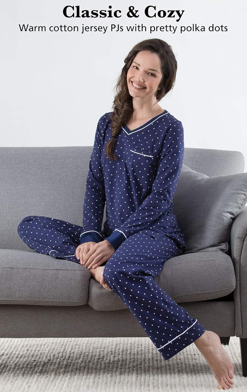 100% Cotton Imported Drawstring closure Machine Wash ROOMY FIT - Our PJs are designed to be relaxed & generously oversized. You may find they RUN LARGE. We recommend if you are between sizes, you SIZE DOWN one size smaller. See size chart below. YEAR-ROUND COMFORT - Classic pajamas with a soft pullover top and timeless polka dots are perfect in any season SUPREMELY SOFT - Soft cotton jersey is cozy yet breathable so she's always comfy during downtime