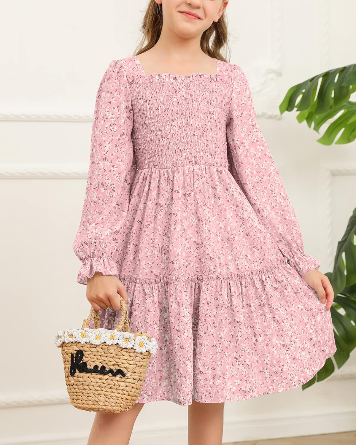 100% Polyester Imported Pull On closure Soft, lightweight, skin touch material, the dress will give your girls a comfortable and warm wearing experience. Features: This dress features shirred detail, flounce sleeve, square neck, high waist, ruffle hem. The dress goes great with any body shape and look just great on you whenever you decide to wear it. Delicate and sweet, the girl dress has endless styling opportunities! Perfect just as it is, or with layers for any special occasions she might have all year long! Hand wash or machine wash, line dry, do not bleach, that will increase the durability of your clothes. SIZE: 5-6 Years: 120CM; 7-8 Years: 130CM; 9-10 Years: 140CM; 11-12 Years: 150CM; 13-14 Years: 160CM. Fits from 5-14 Years, kids and teenagers. Please choose according to the SIZE CHART.