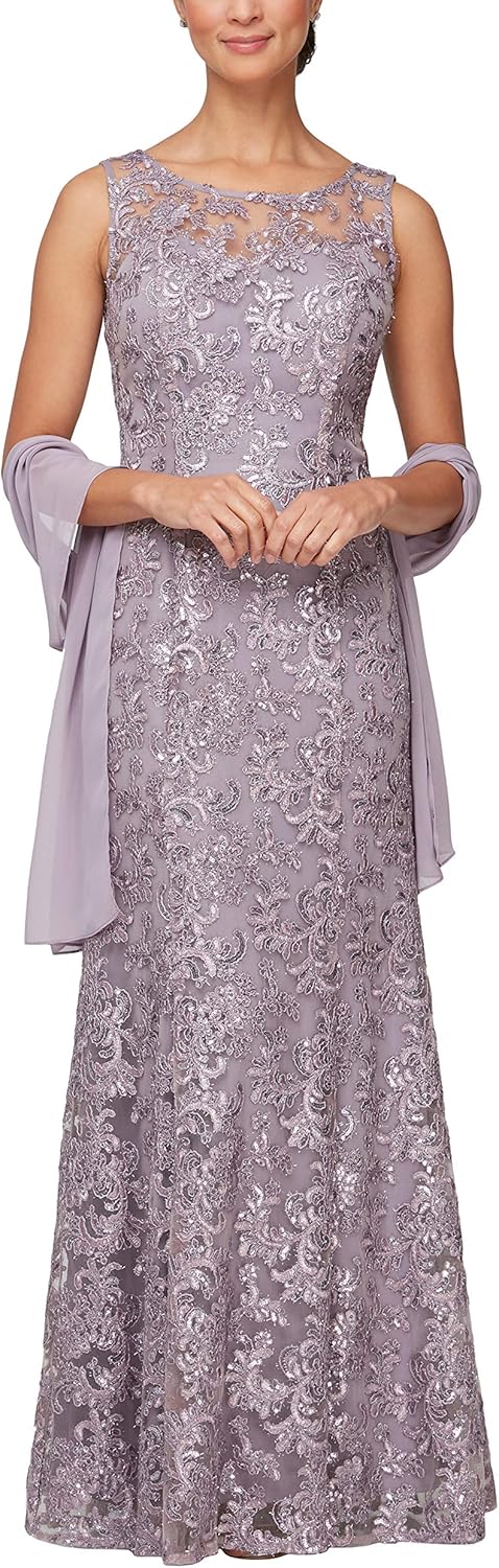 Alex Evenings Women's Long Sleeveless Dress with Shawl
