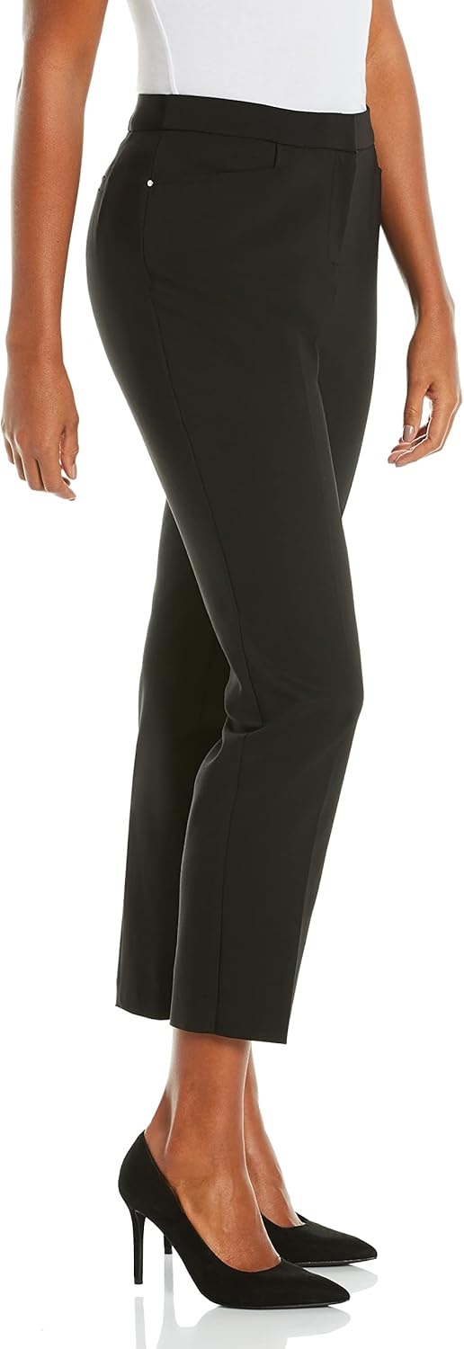 52% Cotton, 45% Polyester, 3% Spandex Imported Hook and Bar closure Machine Wash 28" Inseam FLATTERING STYLE: These ladies’ dress pants are a smart and stylish addition to any outfit. With lightweight satin twill stretch fabric and slim ankle-length legs, this flattering pant effortlessly transitions from work hours to after-hours. CLASSIC CROP: These Rafaella dress pants for women feature slim-cut legs in a flattering ankle length. The cropped design flatters your favorite footwear and updates your look with fresh, polished flair you can wear anywhere.