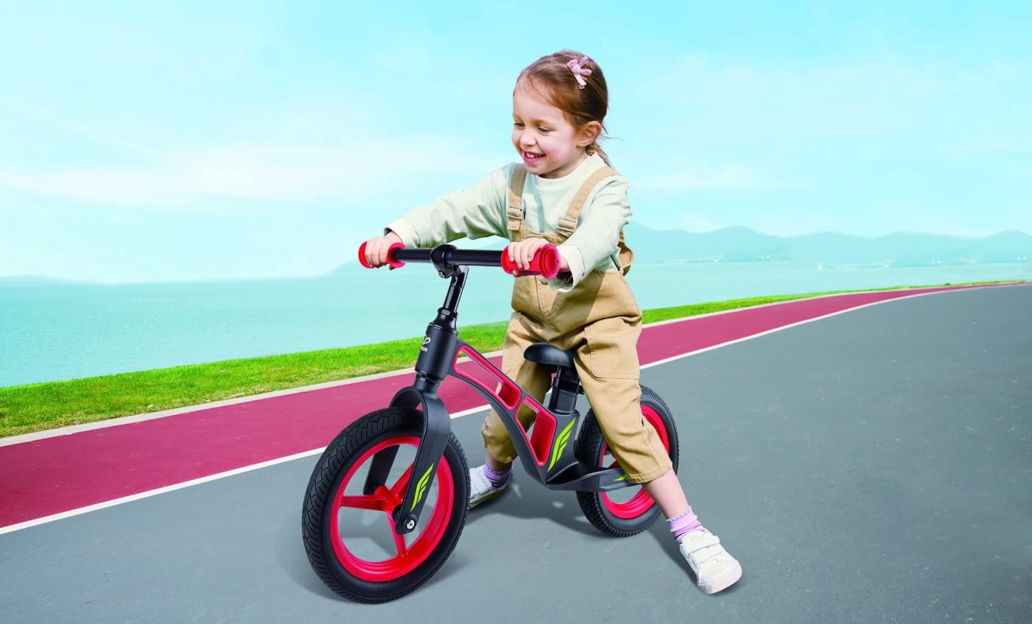 BALANCE BIKE: Dare to go on adventures on-road and off with this two-wheeled wonder. Take your bike-riding adventures to an exciting new level with this amazing free cycling balance bike, giving your young adventurer the wheels to go exploring. ENCOURAGE RUNNING & DEVELOPING SKILLS: This Bike is designed to develop key skills such as coordination, balance, and confidence in mobility for when your child is ready for their first pedal bike LIGHT AND POWERFULL: Our lightweight magnesium alloy frame put the weight in just (8.8 lbs / 3.99 kg) making it easy to carry with you. Wheels are made of PU which is soft and flexible featuring an anti-skid grip pattern ADJUSTABLE: Ergonomic seat and frame geometry optimizes the ride experience. Seat and handle bar can be vertically adjusted to suit your child needs. The perfect way to help beginners to reach the correct riding position AWARD-WINNING BRAND: Hape always developing award-winning toys, recommended for ages 3-5 years. Weight limit 50kg