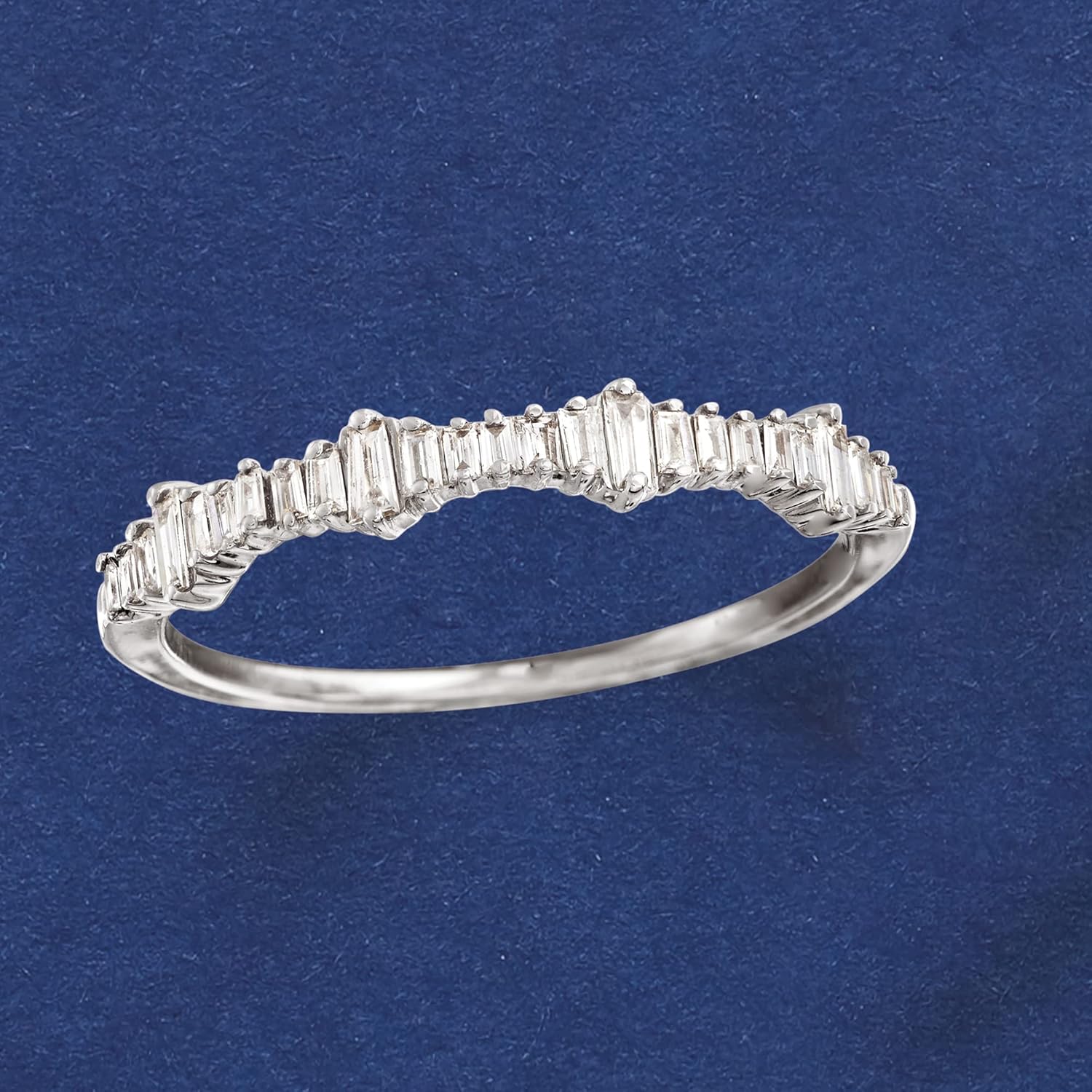 DIAMONDS AND 14KT ROSE GOLD — .20 ct. t.w. baguette diamond ring in 14kt rose gold. Polished finish. 1/8 in. wide. Size 5. IDEAL FOR EVERYDAY WEAR — With its essential design, this ring wears well whether you’re running errands, in the office or out with the girls. ROSS-SIMONS QUALITY — Treat yourself to the luxury of Ross-Simons fine jewelry. Whether your selection is made of 14kt gold, 18kt gold or gorgeous sterling silver, our jewelry always makes a lasting statement. THE PERFECT GIFT FOR HER — This is the ideal gift for your sister, daughter, mom, wife, niece, aunt, best friend, girlfriend — or yourself! Whether she prefers modern or traditional jewelry, Ross-Simons has a wide selection of bracelets, earrings, necklaces and rings to choose from. GIFT BOX INCLUDED — Ross-Simons jewelry arrives beautifully packaged in a gift box, ready to delight for any occasion, including birthdays, Christmas, Mother’s Day, anniversaries, Valentine’s Day, weddings, graduations and much more! Due to the naturally occurring characteristics of diamonds, each is unique and may exhibit imperfections such as inclusions, blemishes and cloudiness, as well as color variations.