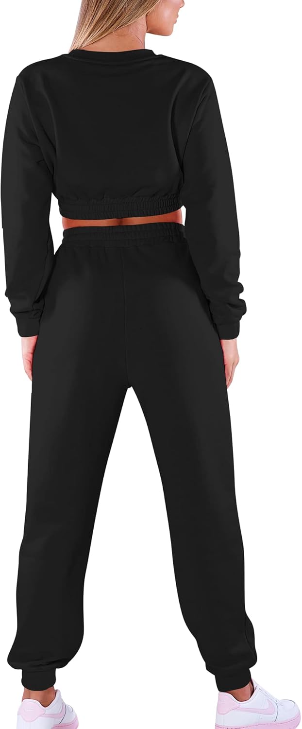Mokoru Women's Workout 2 Piece Outfits Tracksuit Long Sleeve Crop Tops Joggers Pants Sets Sweatsuits