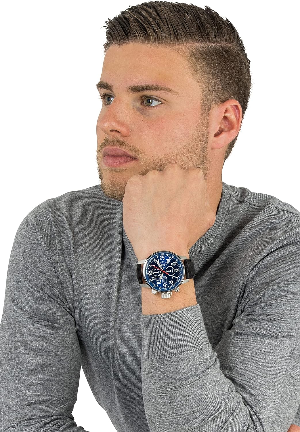 Imported Mix high style and high function with this Invicta watch, featuring a masculine blue dial with stencil-like numerals, a polished stainless steel case, and a sturdy black cloth strap with leather backing. Chronograph functions with 60-second, 60-minute, and 0.1-second subdials Blue dial with date window and luminous hands Tachymeter scale on inner bezel Water resistant to 330 feet (100 M): suitable for snorkeling, as well as swimming, but not diving