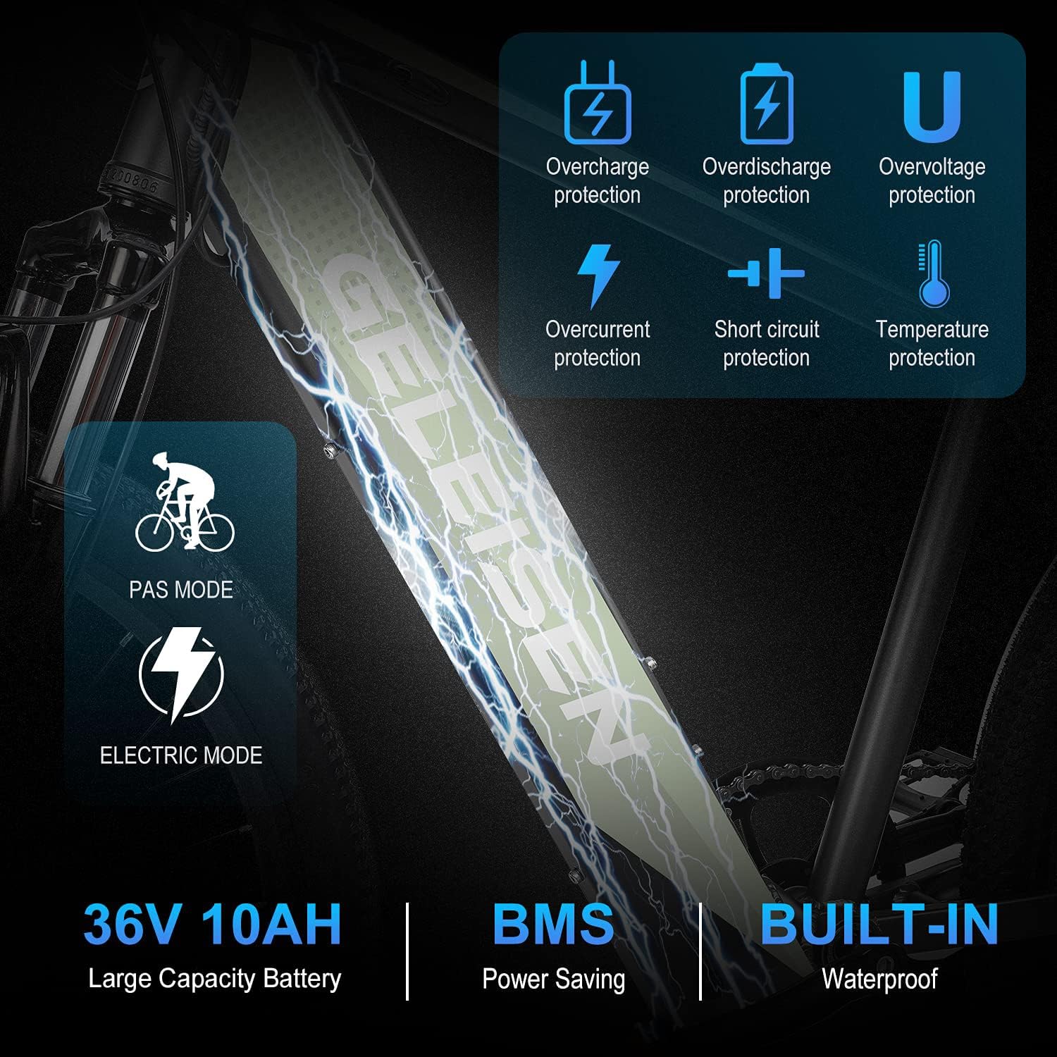 Electric Bike Adult, GELEISEN 26" 350W Ebike Electric Mountain Bike with 36V/10Ah Removable Battery, 5 Level Pedal Assist, LCD Display with USB, Shimano Rear 7 Speed Gears[Gifts for Men Women]