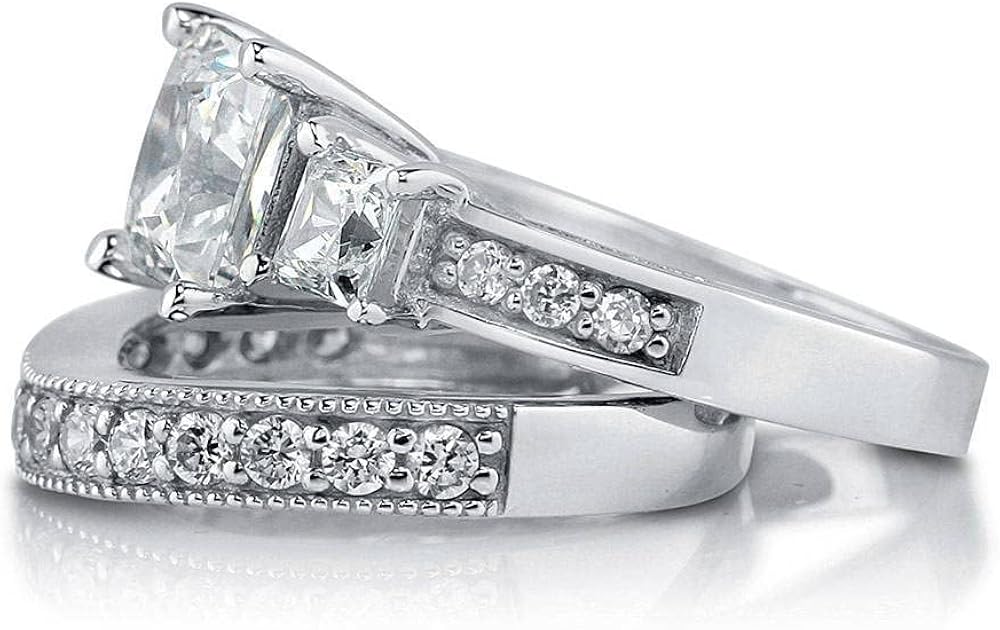 BERRICLE Sterling Silver 3-Stone Wedding Engagement Rings Princess Cut Cubic Zirconia CZ Anniversary Ring Set for Women, Rhodium Plated Size 4-10