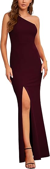 95% Polyester, 5% Elastane Zipper closure Main Fabric Content:95% Polyester, 5% Elastane. Lining Content:100% Polyester. Comfortable and stretchy. Style: Elegant slim style, sleeveless, one shoulder neckline, solid color, floor length prom dress with a delicate slit, fully lined avoid see through, sleek side zip closure. Simple and elegant, we love this evening formal dress for its graceful one shoulder design, sleeveless. Beautiful for mothers of the bride/groom wedding guests and party hoppers. Beautiful coming and going, our sleek and chic wedding guest dress in a comfortable stretch jersey knit is designed to turn heads at all your social events. Pure glam: we're obsessed with this classic but sexy one shoulder gown. Details we love: that sleek side zip closure and chic slit at the skirt.