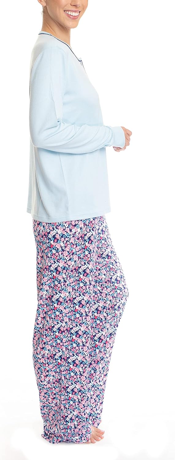 Butter Knit Imported Drawstring closure Machine Wash Incredible Comfort: designed using non-irritating butterknit fabric, these feel sensationally soft on the skin and make the perfect loungewear for catching a comfortable nap, just relaxing in the house or getting a great nights sleep Lounge in style! Details include v neck neckline and a drawstring waist. Our Hanes Women's Sleep Set is available in various colors and patterns We’ve used the best materials we could find and pieced them together with superb stitching, creating women's nightwear that offers total durability and holds up well in the wash without shrinking or running color