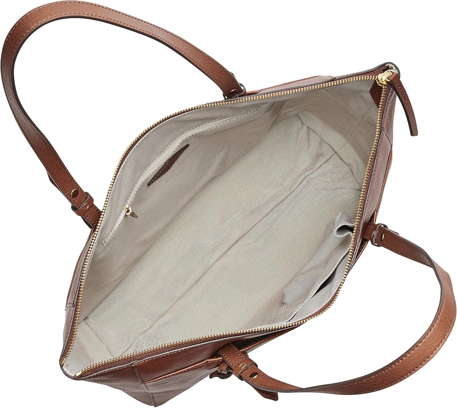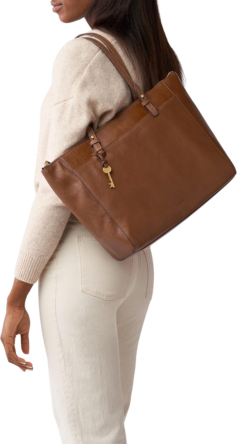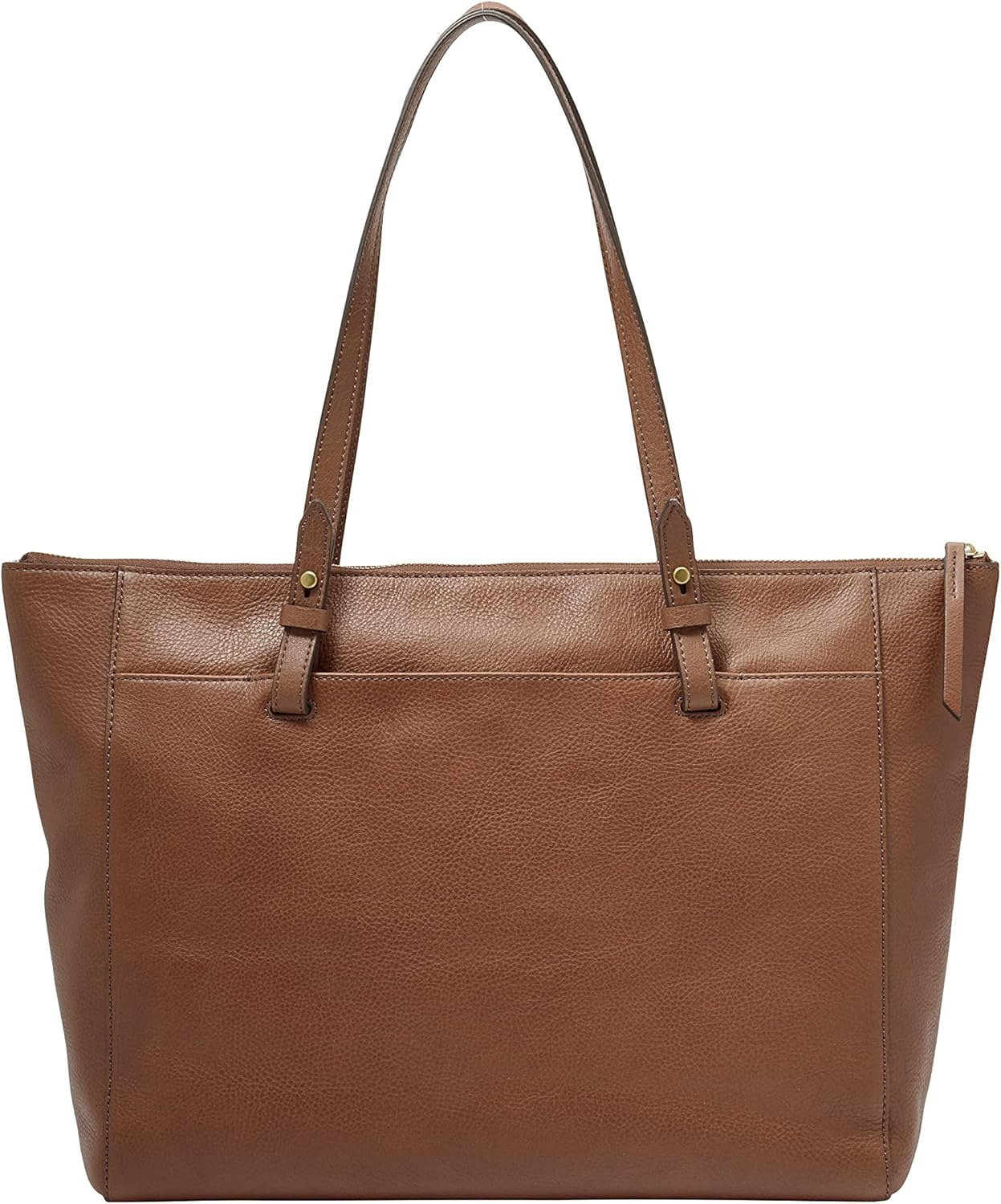 textile Imported Fossil has always been inspired by American creativity and ingenuity. Since 1984, we’ve strived to bring new life into the industry by making quality, fashionable watches and accessories that were both fun and accessible. Are you a finder or seeker with style (and a lot of other stuff) to spare? Then Rachel’s classic silhouette is especially for you. Our must-have Rachel Tote features perfectly placed pockets and holds up to a 15-inch laptop. Genuine Eco Leather Tote Bag; Our eco leather uses a resource-efficient tanning process; Zipper Closure; imported Exterior Details: 2 Slide Pockets; Interior Details: 1 Zipper Pocket, 2 Slide Pockets; Device Compatibility: 15" Laptop Measurements: 14"L x 4"W x 13"H; 2 9.25" Handles This handbag is eco-friendly with the use of Litehide - leather that has undergone resource-efficient raw materials processing that significantly reduces water consumption, wastewater pollution, CO2 emissions, and waste.