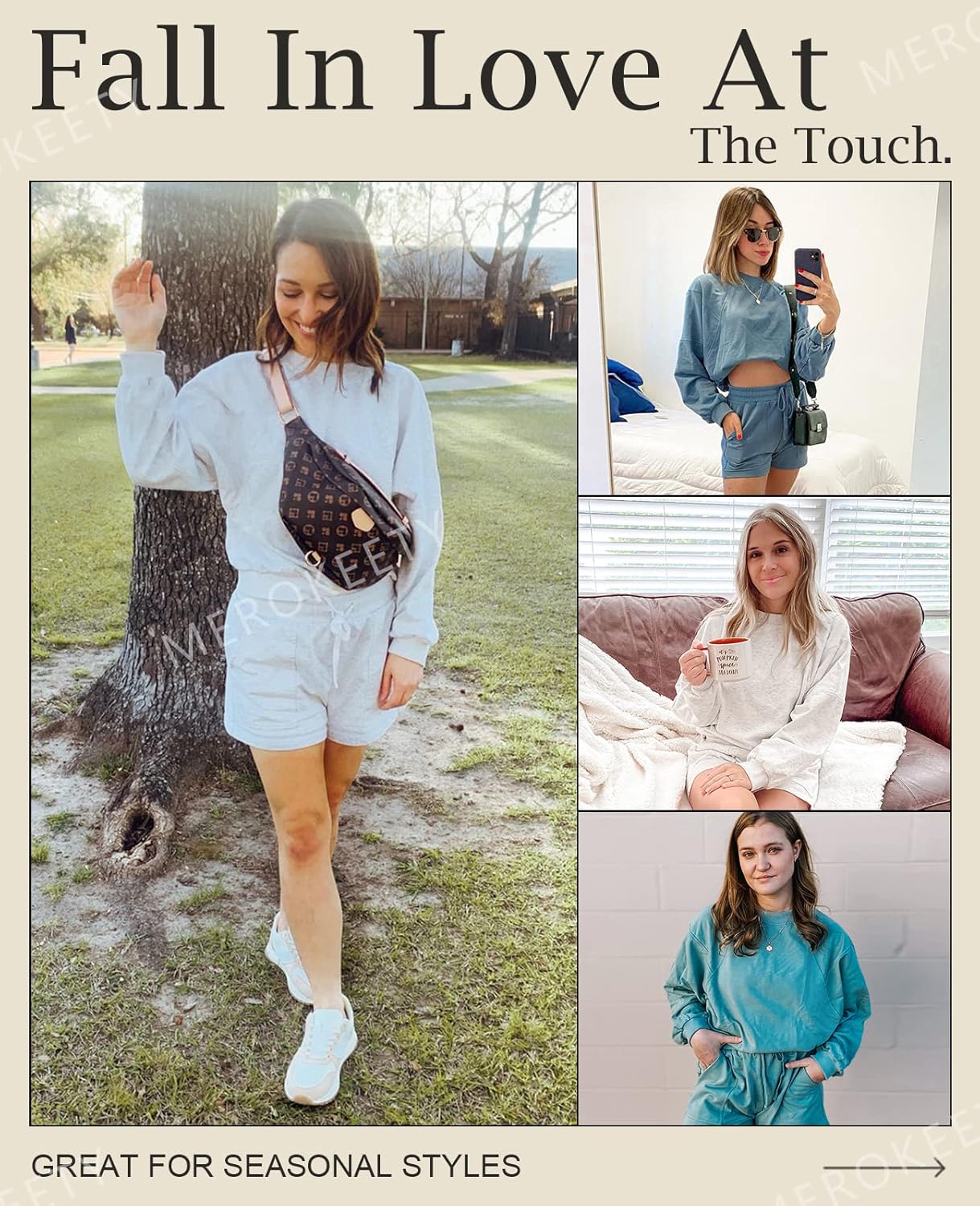 85%Rayon 15%Polyester Imported Pull On closure Machine Wash Size Guide: S=US 4-6, M=US 8-10, L=US 12-14, XL=16. Made of soft and comfortable fabric, warm enough, very gentle on the skin. Lounging all around house freely! Main Features: Thick and cozy materials adopt. This lounge sets includes a long sleeve batwing sweatshirt top and a high waist matching shorts, round neck, drop shoulder, patchwork design, loose fit shorts, wide leg, stays cool and fresh. Effortless beauty, how dreamy is the new sweatshirt set. Oversized bat sleeve tops gives you more space in the shoulders and arm parts, no limits to make any movement even in winter. Ribbed cuffs and hem to lock warm and softness. You will love the solid color pullover design, super cute and stylish. Matching high waist shorts has elastic waistband and drawstring to match all figures adjustment.