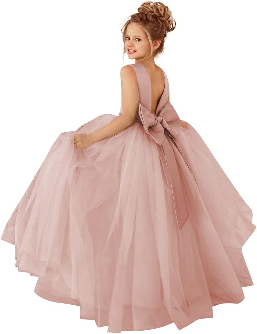 Glossy Satin & Soft Tulle Backless with Zipper closure Hand Wash Only ? Soft and multi-layer tutu design. Flower girls dress features O-neck and backless, a tied belt with a bow-knot on the back. Elegant Girls princess party dress, kids pageant ball gowns. ? An absolute princess in this dress. Parents should take a photo of your little princess to commemorate this precious moment, flower girl dress is a great gift for your little princess, granddaughter. Perfect for Toddler girls/ little girls/teen girls/ junior girls. ? Perfect for special occasion like party, wedding, holiday party, first communion, graduation,prom, quinceanera, reception, ceremony, evening party, baptism, funeral, pageant, birthday, artistic photo shoot, family gathering or other special occasions. Girl Halloween Christmas Dress. ? Gently Hand Wash in Cold Water/do Not Bleach/hang or Line Dry, that will increase the durability of your clothes. If You Have Any Questions, Feel Free to Let Us Kown Before Ordering. ? The recommended age is for reference only. Our size is different from amazon size. Please check the size chart description before ordering.Customer satisfaction is our top priority. Please do not hesitate to e-mail our after-sales team if you have any questions or concerns.