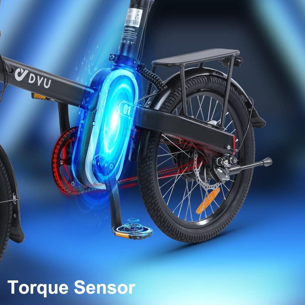 DYU Folding Electric Bike,20 inch Intelligent Electric Bike with LCD Display,Smart Ebike with Central Torque Sensor,Pedal Assist,Removable Battery,Height Adjustable