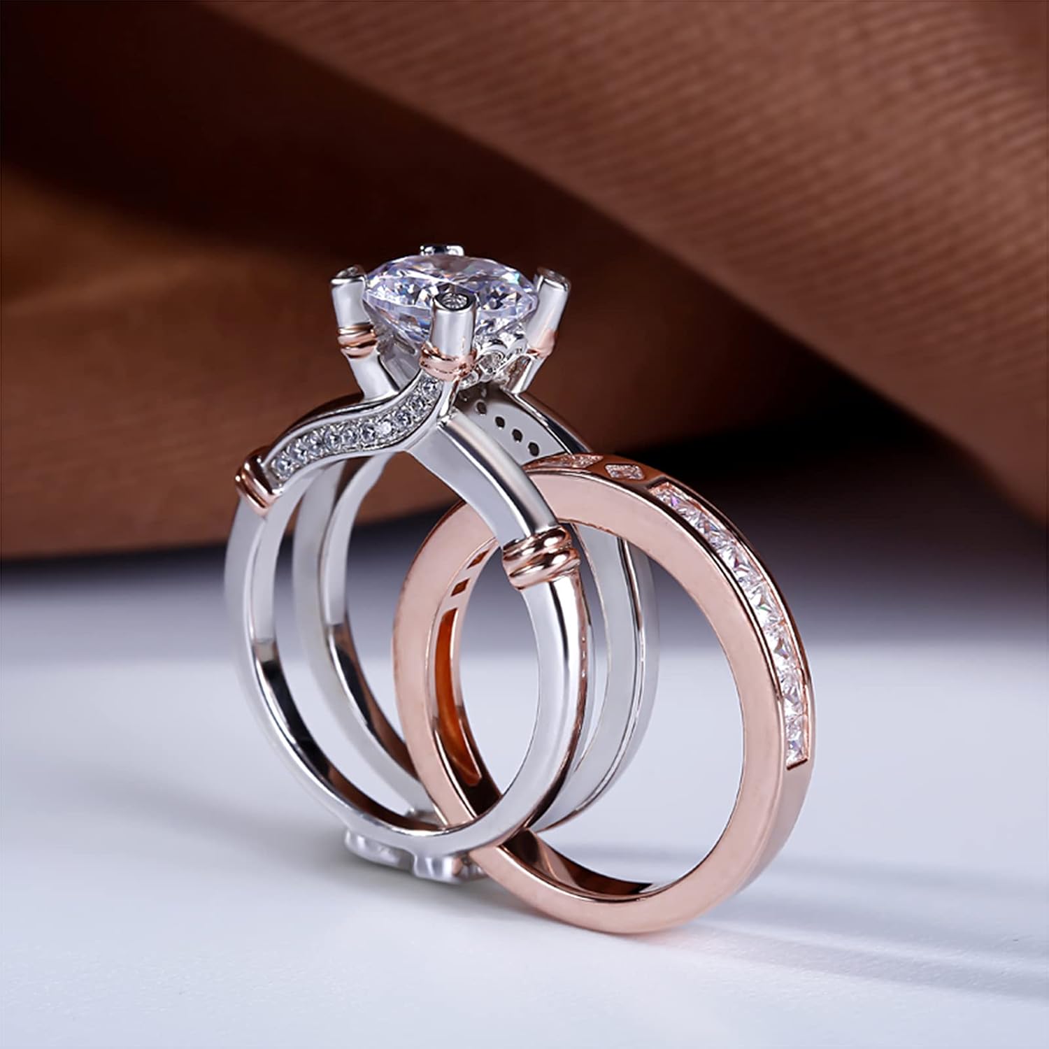 ✿ 【Inspiration】: The women wedding ring set with Glistening and glamorous design, this ring will win your heart. This eye-catching interchangeable ring set features an enchanting round stone and rows of smaller stones embellish the engagement ring in profile. Additional stones are set into the rose gold tone matching wedding bands. Gleaming with your love, this slender wedding set is a true reminder of your everlasting love. ✿ 【Material Quality】: The 925 silver women wedding ring set with top quality AAA Jeulia stone always go well with 925 sterling silver rings. Have a resplendent sparkling and reflect rainbow gloss in the sunshine. Nickel-free, Lead-free, Cadmium-free and Anallergic, tarnish resistant and will not easily change color. ✿ 【Size】: Primary Stone:1/3.5ct. Side Stone:39/1.44ct. Weight -9.88g, Width -8 mm, Height -8.9 mm, Thickness -7.3 mm. ✿ 【Best Gift】: If you are looking forward to an gift for wife, mom, daughter or friends, this ring sets will be the perfect gift for Valentine's Day, Birthday, Mother's Day, Anniversary, Thanksgiving or Christmas. ✿【Guaranteed】: The Jeulia 925 silver women wedding ring set offers an easy day return & exchange policy, all of our products are covered by a one-year warranty. Please contact us if you have any questions after receiving the item