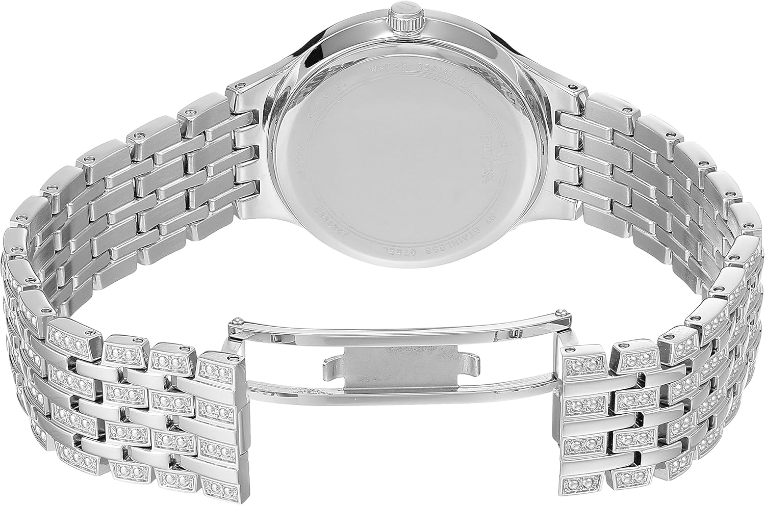 From the Bulova Ladies Crystal Collection, beautifully detailed with authentic crystals, the watches in this striking collection make a brilliant fashion statement. 3 Hand Silver-Tone Stainless Steel Crystal Accents and Mineral Crystal 30M Water Resistant and 3 Year Limited Warranty