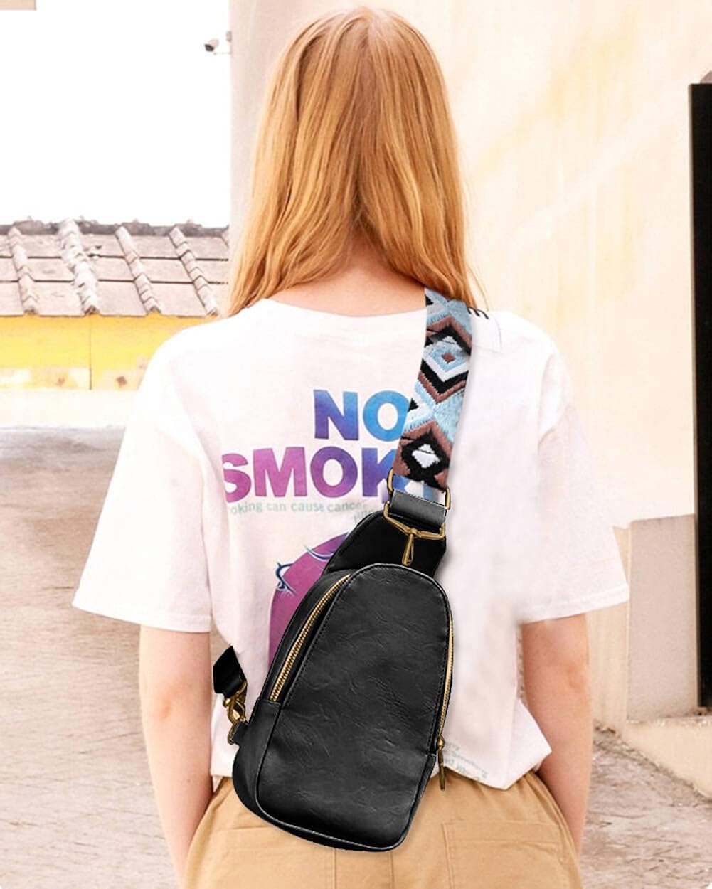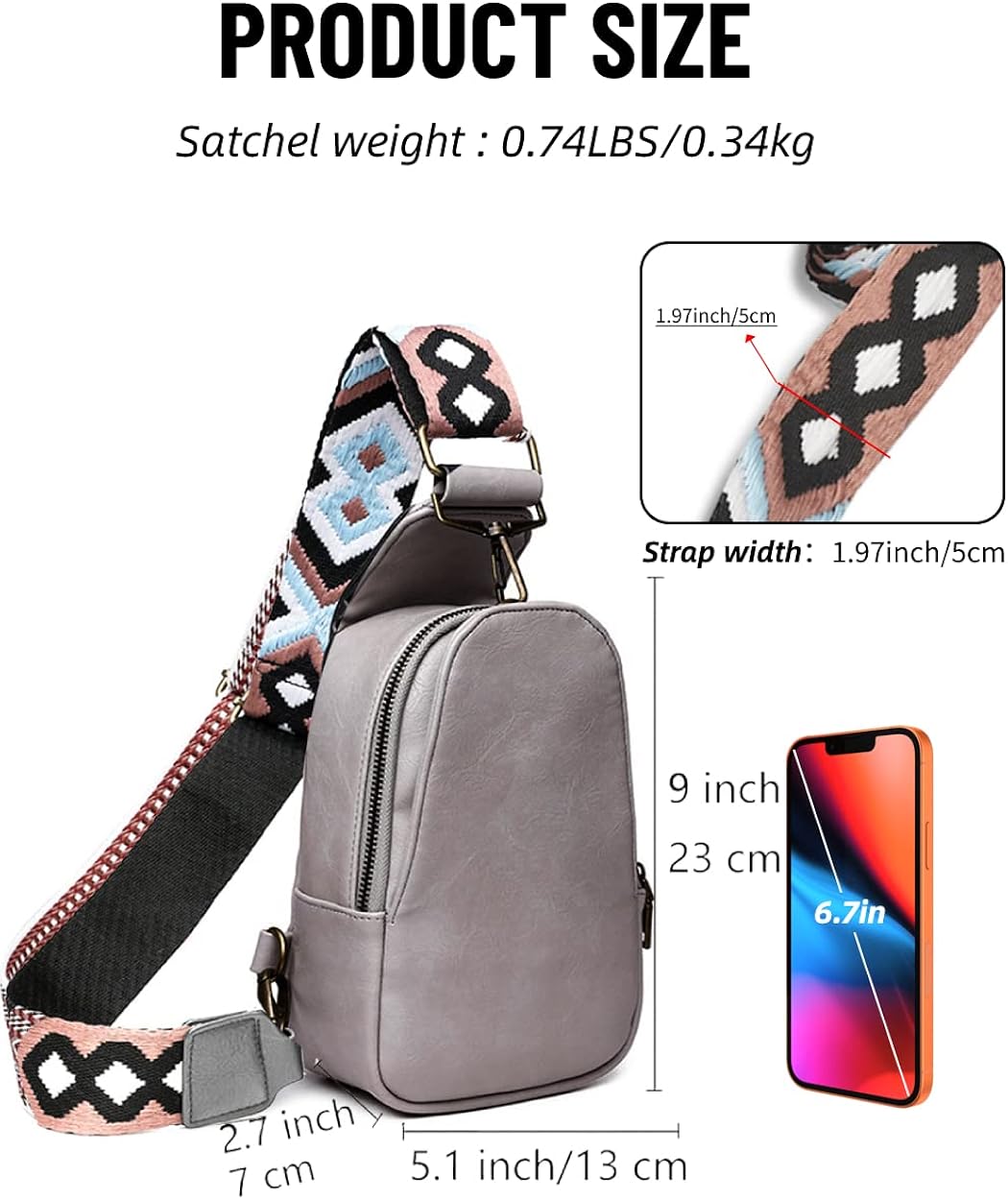 Imported Magnetic closure Crossbody Bag for Women: This Sling bag for women is designed with wider and adjustable shoulder straps to make your shoulders more comfortable and reduce the pressure on your shoulders. Also the shoulder straps with vintage embroidered jacquard look more fashionable and can easily match with your different clothing styles. Multifunctional bag: spacious zipper main compartment and inner pocket can hold sunglasses, store keys, ID cards, driver's license. And easy to carry. Easy to access. Small body but huge independent storage space, 1 quick access front pocket with magnetic closure, perfect size for your wallet, cash, cell phone, cards, passport and any necessities in your daily life. Durable material: our chest crossbody fanny packs for women is made of high quality PU leather, which is comfortable, lightweight and waterproof. And the man-made leather is durable and easy to clean. Equipped with durable metal fasteners and smooth zippers for long-lasting durability. Suitable for any occasion : Chest bag for women Providing you with high quality products and meticulous details. We designed our leather sling bag for men and women so that you can easily store your belongings and enjoy a pleasant and relaxing workout experience. Perfect for running, hiking, camping, fishing, sightseeing, travel, beach and any outdoor activities. LIGHTWEIGHT AND CONVENIENT: This Crossbody Sling Bag measures 5.1 x 2.7 x 9" (L x W x H) and weighs 0.9 lbs, making it lightweight and portable. It is ideal for storing personal items.