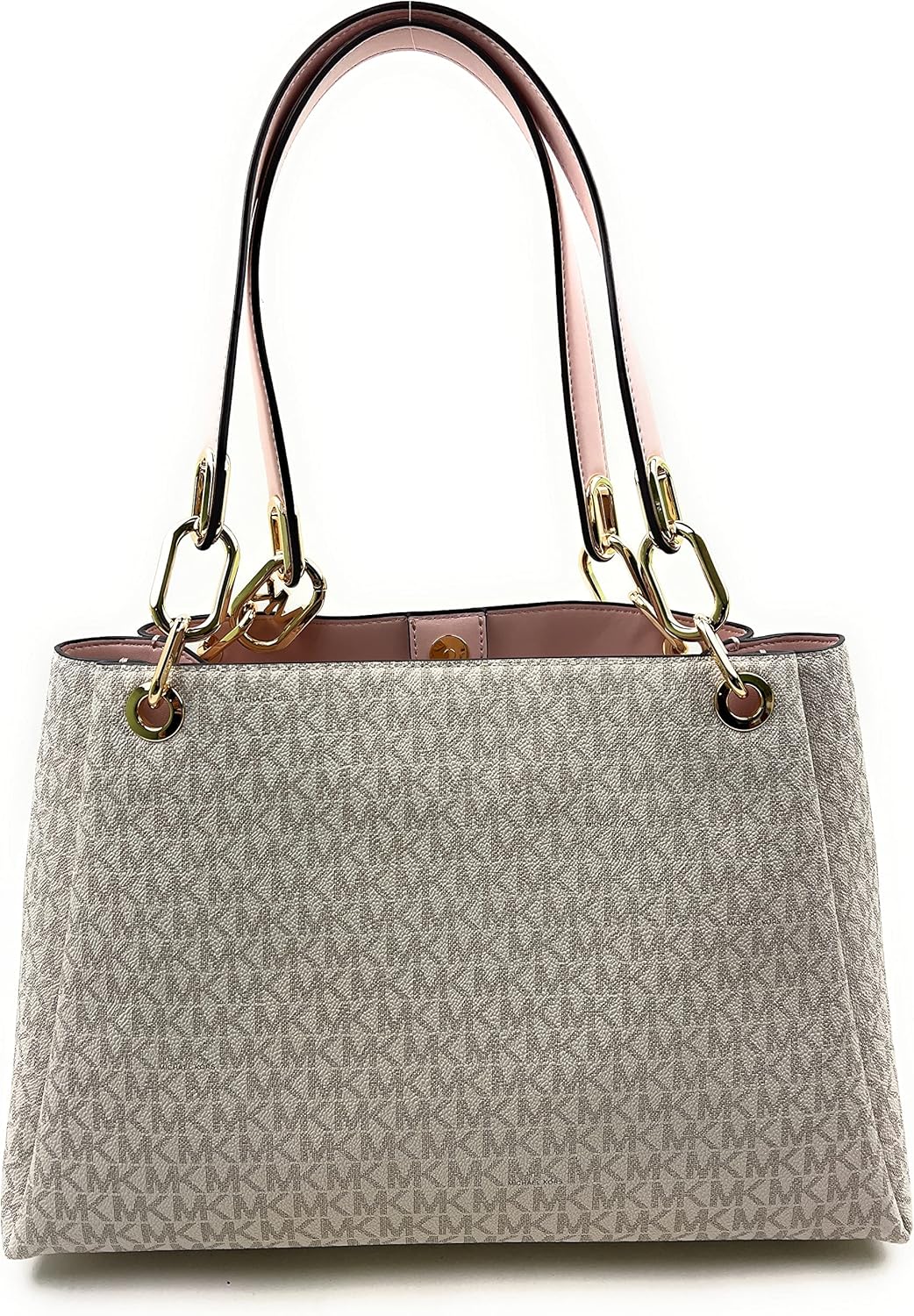 Pvc,Leather Leather lining Zipper closure Snap Closure Michael Kors Women's Trisha Large Shoulder Bag Tote Purse Handbag Made of MK Logo PVC With Leather Straps, Light Weight, and Spacious Inside 3 Compartments With 1 zip pocket and 2 slip Pockets in the Middle Compartment Dimension: 14.75"L x 10"H x 6"D, Shoulder Strap Drop 10" IMPORTANT: Style Made Only For MK Outlet, Does Not Include Duster Bag