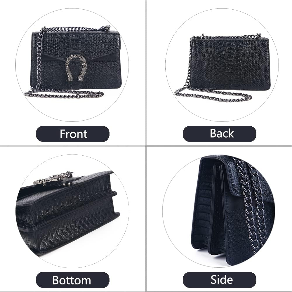 Pu Leather,Leather Imported Material: Ladies Fashion Bag is made of high-quality PU leather (artificial synthetic leather). It feels comfortable, and the color is full and shiny. Metal chain bag and decorative buckle are fashionable, novel and beautiful. Ideal for traveling and carrying. Structure and Size: Crocodile pattern crossbody bag (length: 9.8 inches * width: 3.4 inches * height: 6.1 inches). The magnetic opening and chain shoulder strap are easy to use and can be worn in a variety of ways. It can be cross-body, hand-carried and single-shoulder. Simple Design: using the most popular patterns at the moment, sexy and beautiful full of high-level sense. Lined with 2 main pockets and compartment zipper pockets for easy storage and organization of items. Such as mobile phones, keys, sunglasses and cards. Lovely Choice: classic retro style, stand upright body is not easy to deform. Comfortable, light and generous, it is very suitable for daily work, travel, parties and cocktail parties. It is also a perfect gift for lovers, friends and family. Service: If you have any questions or suggestions about the product, please contact us. DEEPMEOW strives to create the best quality service, so that every customer has a good shopping experience.