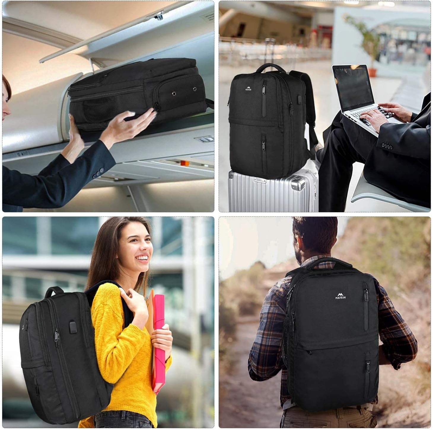 MATEIN Travel Backpack, 40L Flight Approved Carry on Hand Luggage, Water Resistant Anti-Theft Business Large Daypack Weekender Bag for 17 Inch Laptop, Black