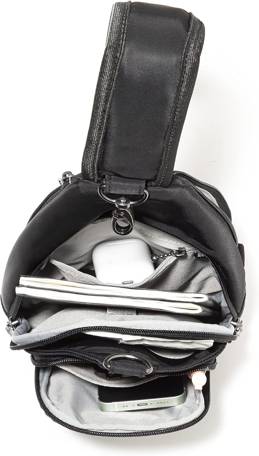 Made in the USA or Imported STREAMLINED STYLE: Weighing just 12 oz. and measuring 7'' W x 12'' H x 2.5'' D, this lightweight sling bag was designed to work with you, not against you. MULTIFUNCTIONAL ORGANIZATION: With a lipstick loop, key leash, quick-access pockets, and do-it-all compartments, keeping essentials close has never been easier. GRAB & GO PHONE POCKET: Never miss a picture-perfect moment or an important call; your phone's always within reach thanks to this handy pocket. CONVERTIBLE CONVENIENCE: Wearable on your left or right side, you can be sure this sling backpack is ready to answer whatever the day ahead calls for. CRAFTED TO BE CLEAN: When it’s time for a quick refresh, simply drop your sling purse into a gentle, cold wash cycle and air dry for an instant makeover.
