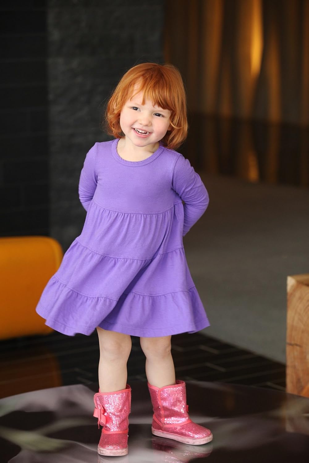 City Threads Girls' Super Soft Cotton Long Sleeve Tiered Dress Princess Made in USA