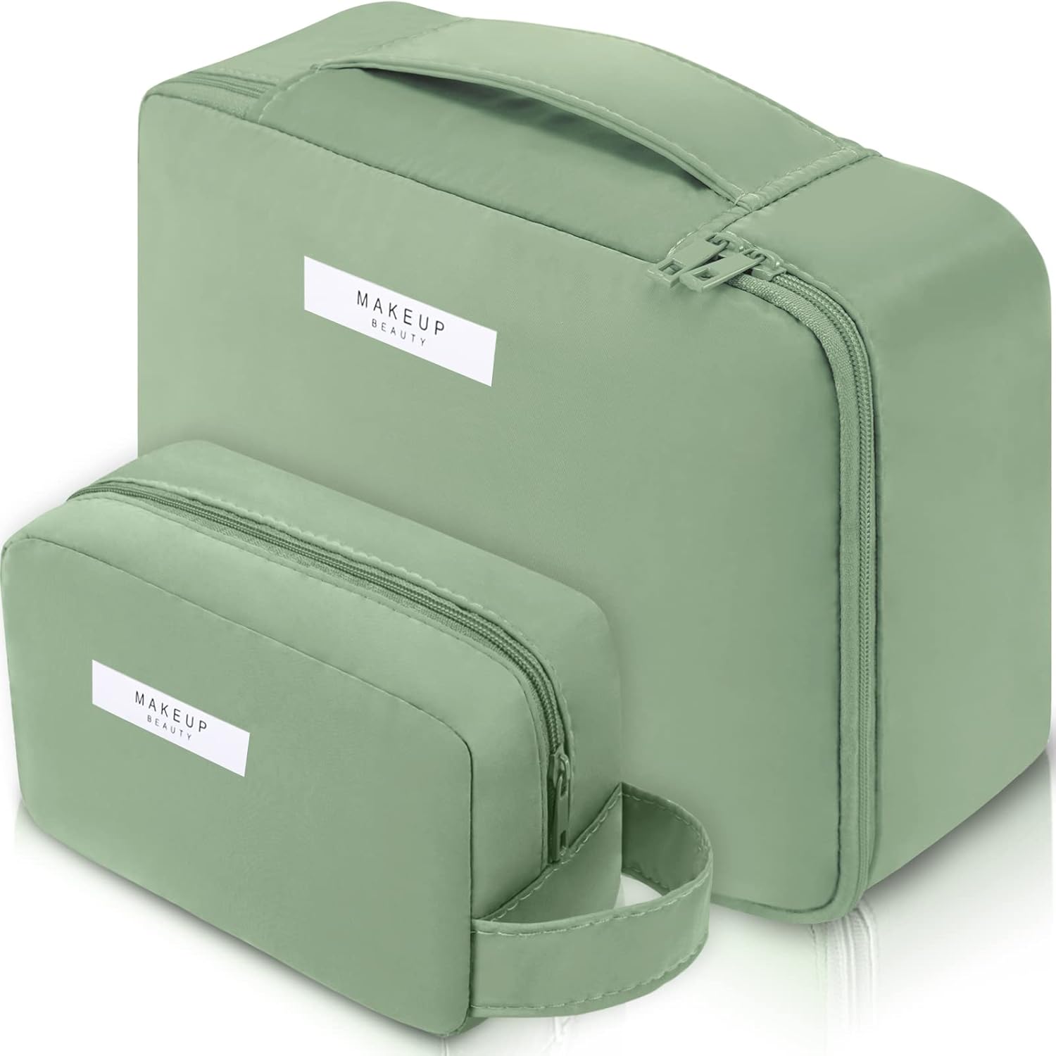 Noozion Makeup Bag 2 Pieces Toiletry Bag Portable Cosmetic Pouch Travel Organizer Water-resistant Purse for Women and Girls
