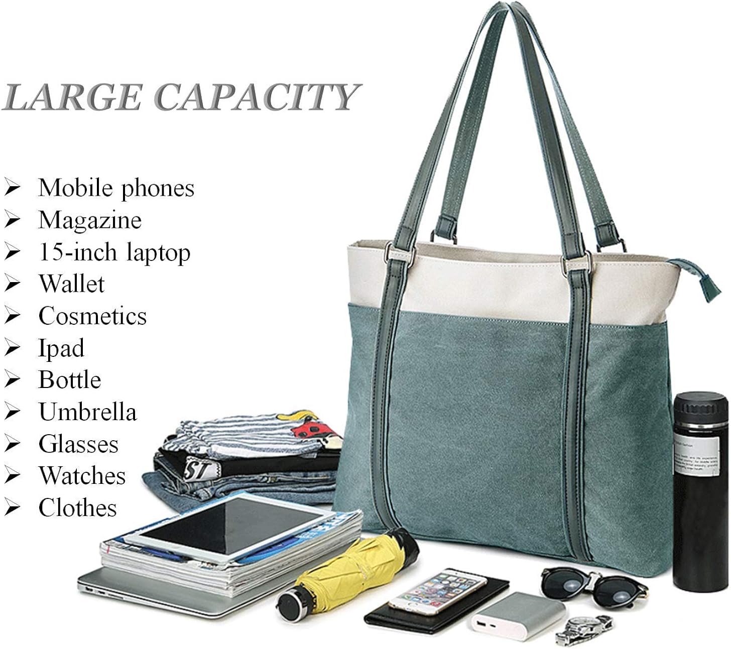 Please note: This product is available in two options. The one priced at 29.89 has a fully padded computer compartment, while the other one priced at $25.99 does not. Imported Lightweight Canvas Fabric Material and Durable PU leather handles. This tote bag is casual, strong enough to carry your laptop. With foam padding for bump and shock absorption to be shockproof and protect your laptop. 15.75"L*4.33"W*12.99"H,Weight:Only 1.5lb, fits 15.6 inch laptop, computer or tablet. separate storage space can hold your things orderly,easy to find like laptop/books/wallets/cellphone/passports/cards/cash/office supplies/magazine/umbrella and so on Simple and stylish design,wide long shoulder strap,easy to wear on your shoulder,great as laptop bag,handbag,work school tote bag,casual shoulder bag,travel bag.