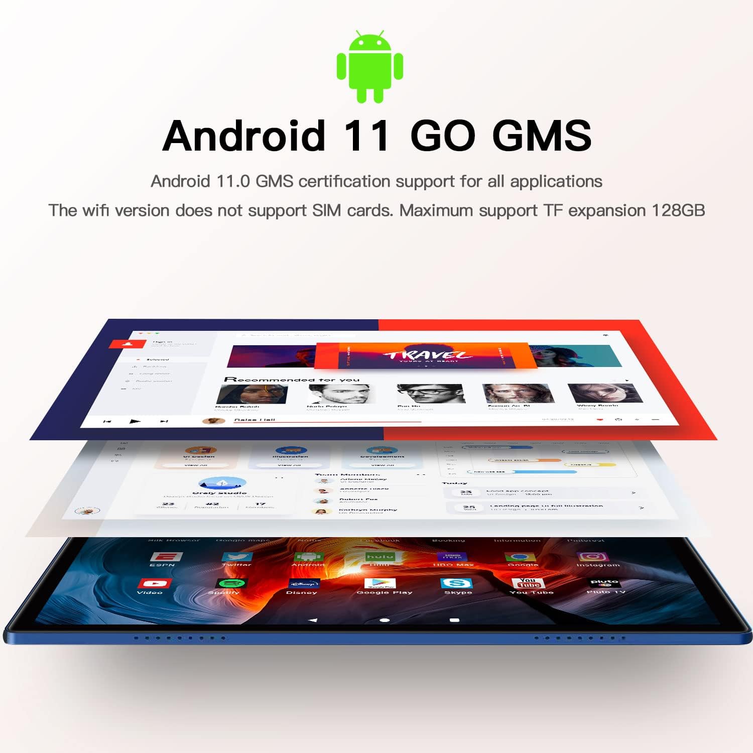 ?【Android 11 +1.8GHz】Tablet android 11certified by GSM , maximizing performance and privacy. You can have full access to services and download any apps from Play Store like Skype, Netflix, YouTube, etc. The Tablet PC is equipped with a 1.8GHz quad-core processor that runs smoothly and quickly and supports large-scale gaming. ?【WIFI Fast Response】The tablet PC supports 2.4GHz WIFI, the 2.4GHz signal is stable and the distance is long. Which provides a more comfortable experience for entertainment, browsing, gaming and shopping. The 10-inch touch tablet with Bluetooth 5.0 offers the function of better mobile navigation. ?【4GB RAM+64GB/256GB ROM Scalable Storage】 The tablet's 4GB RAM allows you to run more programs in the background, ensuring your computer runs at high speed. Built-in 64GB ROM storage gives you enough space to save music, videos and files. Micro SD card slot offers up to 256GB expandable memory, giving you unlimited opportunities. ?【2.5D High Resolution & Dual Camera】The 10 inch tablet uses IPS 2.5D curved glass screen, which offers you an incomparable visual experience, excellent contrast and excellent color reproduction. 1280*800 widescreen aspect, the screen adopts G+G technology and makes touch fast and sensitive. The tablet has 5MP + 2MP dual cameras which can meet all your photo and video recording needs. ?【6000mAh Battery Grade】The battery capacity reaches 6000mAh, so you can surf the Internet and enjoy music and videos with your tablet anytime anywhere. Intelligent power management systems greatly extend the tablet's battery life, about 15 hours of talk time, about 18 hours of audio playback, and 2A charger charging time of about 2 hours. ?Package Contents: 1x Tablet, 1x Charger, 1x Type-C, 1x User Manual.