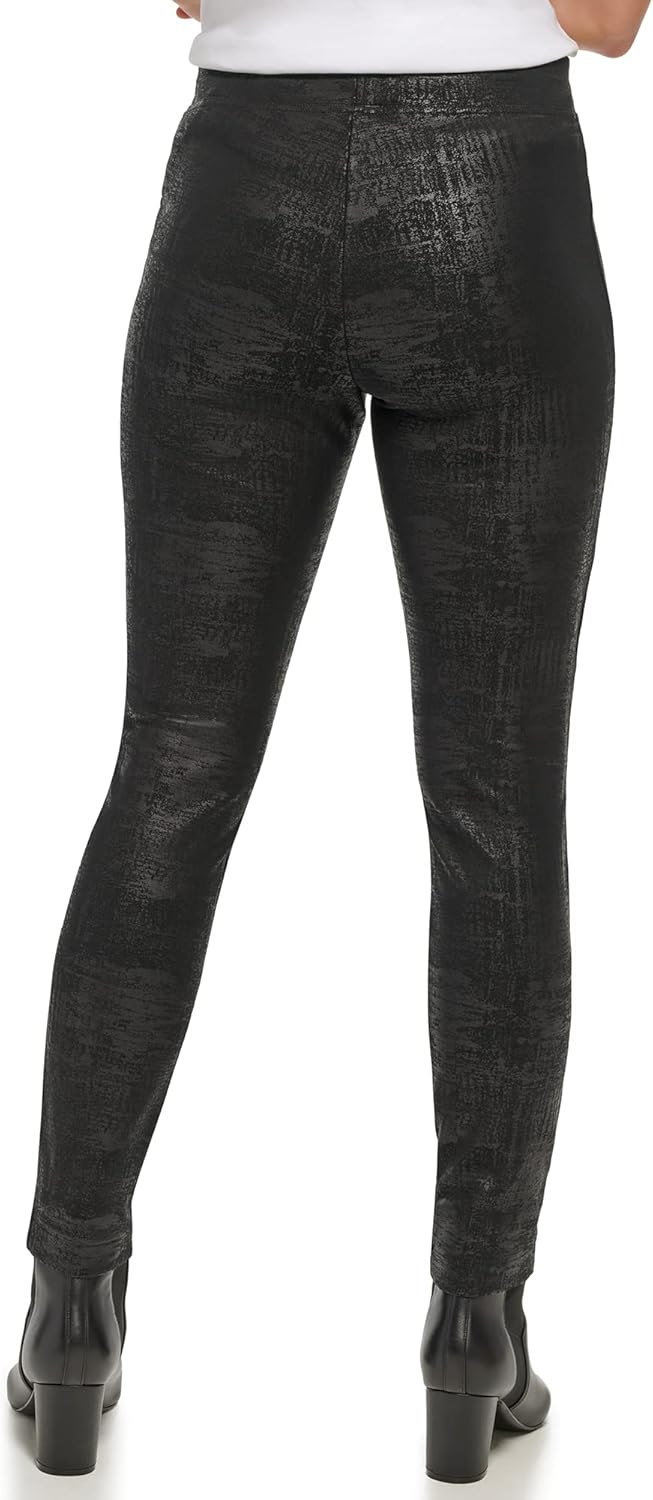 56% Rayon, 40% Nylon, 4% Spandex Imported Pull On closure Machine Wash Skinny legging with front-seamed leg and logo plate at hip Universal match: Dress up or down no matter the season, great for spring, summer, fall and winter; these are the pants women need to match various styles and show both their flair and professionalism Perfect for any occasion: Wear DKNY to work, while traveling, on a night out or simply as a part of your daily outfit