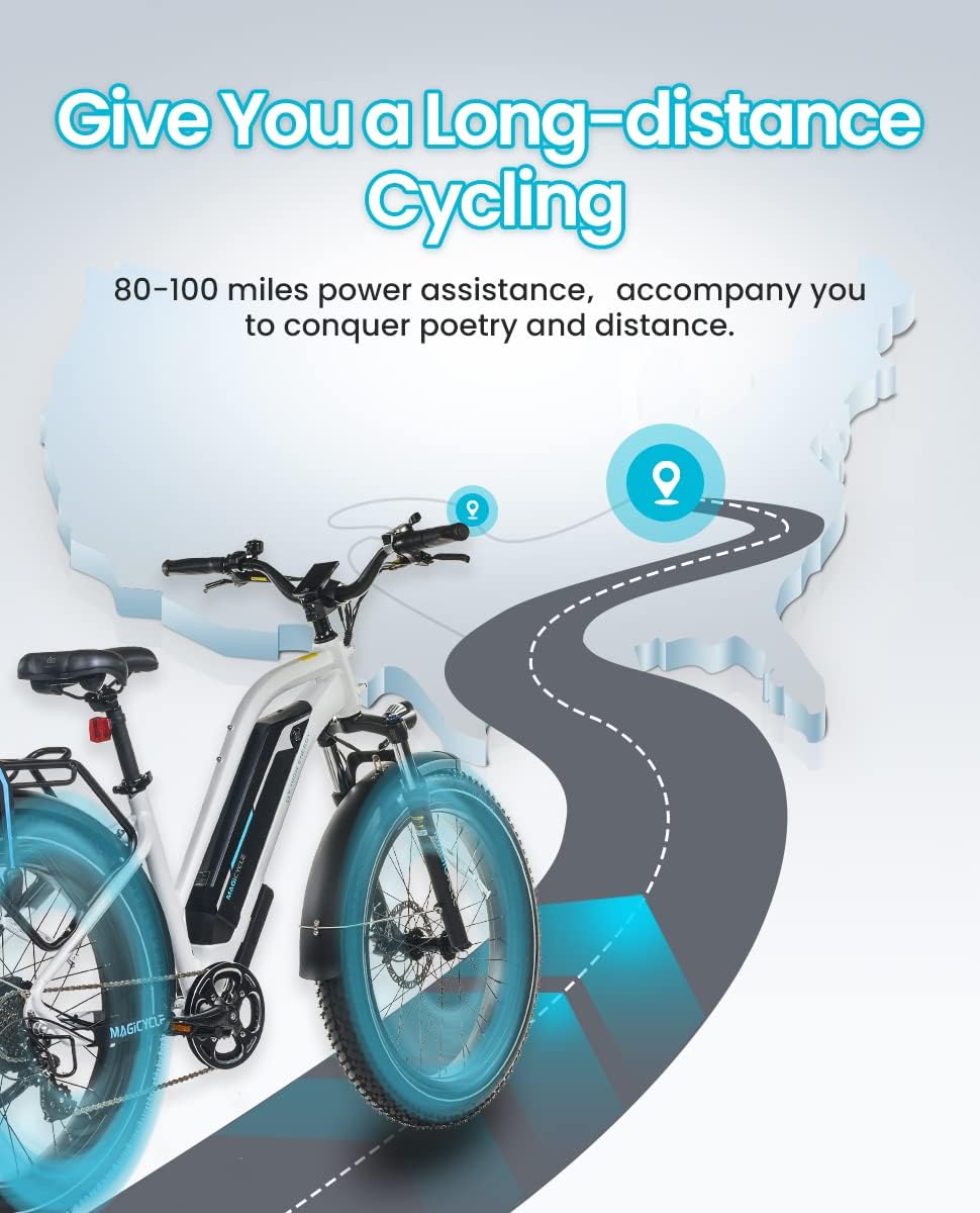 MAGICYCLE Fat Tire Electric Bike for Adults 750W Motor 52V 15AH/20AH Large Battery E Bike 26'' Fat Tire Electric Bike 25MPH 7-Speed Up to Electric Mountain Bike