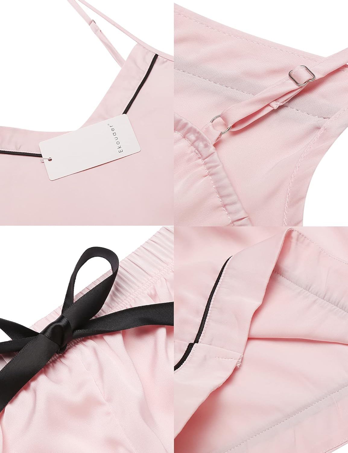 96%Polyester+4%Spandex Imported Drawstring closure Machine Wash Material:Cami pajama set is made of Premium 96%Polyester+4%Spandex satin fabric.Ultra Soft Silk Ekouaer Sleepwear Features:Two Piece Pajama Set featuring sexy lingerie sleepwear style.Satin cami and shorts pajama set.High quality material and this cami sleep set with superior stitching and perfectly-lined hems. Simple and Stylish,Comfy sleepwear set Pajama Top:Satin pajamas with camisole sleepwear top,sexy v neck and adjustable shoulder straps.Lightweight and Skin-friendly silk pajamas for women.Great for sleeping,casual wear or lounging around the house or yard all day