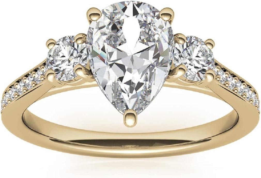 Product Type: Handmade Gold Moissanite Ring All Stone Type: Moissanite | Stone Weight: 2 CT Approx. (10x7 MM) | Color Grade: Colorless | Stone Shape: Pear Cut Clarity Grade: VVS1-2 | Luster: Excellent | Stone Make: High Quality | Stone Cut: Very Good Cut | Metal Type: 925 Silver/10K/14K/18K | Metal Tone: White/Yellow/Rose Gold | Metal Stamp: 925/10KT/14KT/18KT | Express shipping available at checkout | Moissanite ring/jewelry is a perfect gift idea for Wife, Mother, Girlfriend, Bride, Daughter, Friends, Yourself on Anniversaries, Weddings, Engagements, Birthday, Dating, Valentine's Day, Christmas and so on. All our Moissanite solitaire ring and gold engagement ring arrives in a secured package, best for presentation and protection. Note: Product color may slightly vary due To photographic lighting sources or your screen settings. All of our Jewelry will come with a limited and exchange is based on manufacturing defects, not abuse or misuse. All stones are test positive in diamond thermal tester. Natural Diamond hardness is 10 and Moissanite hardness is 9.25. So moissanite stone can not be scuffed easily. Diamond and Moissanite maintains its clarity and sparkle throughout a . It's Harder than Emerald, Ruby or Sapphire and more Brilliant than Diamond. Each and every piece of our Moissanite comes with a limited which s that every stone will maintain its fire and brilliance and will never fade. Setting type: Solitaire-Setting