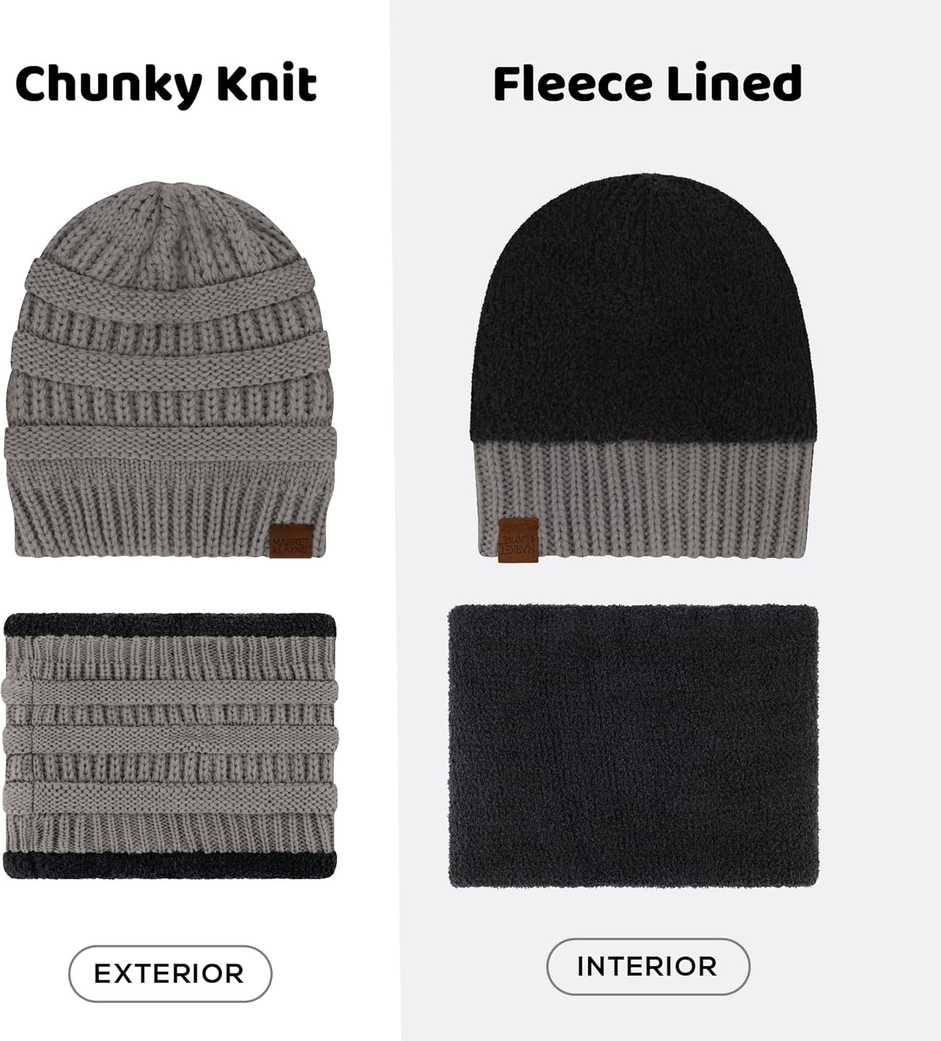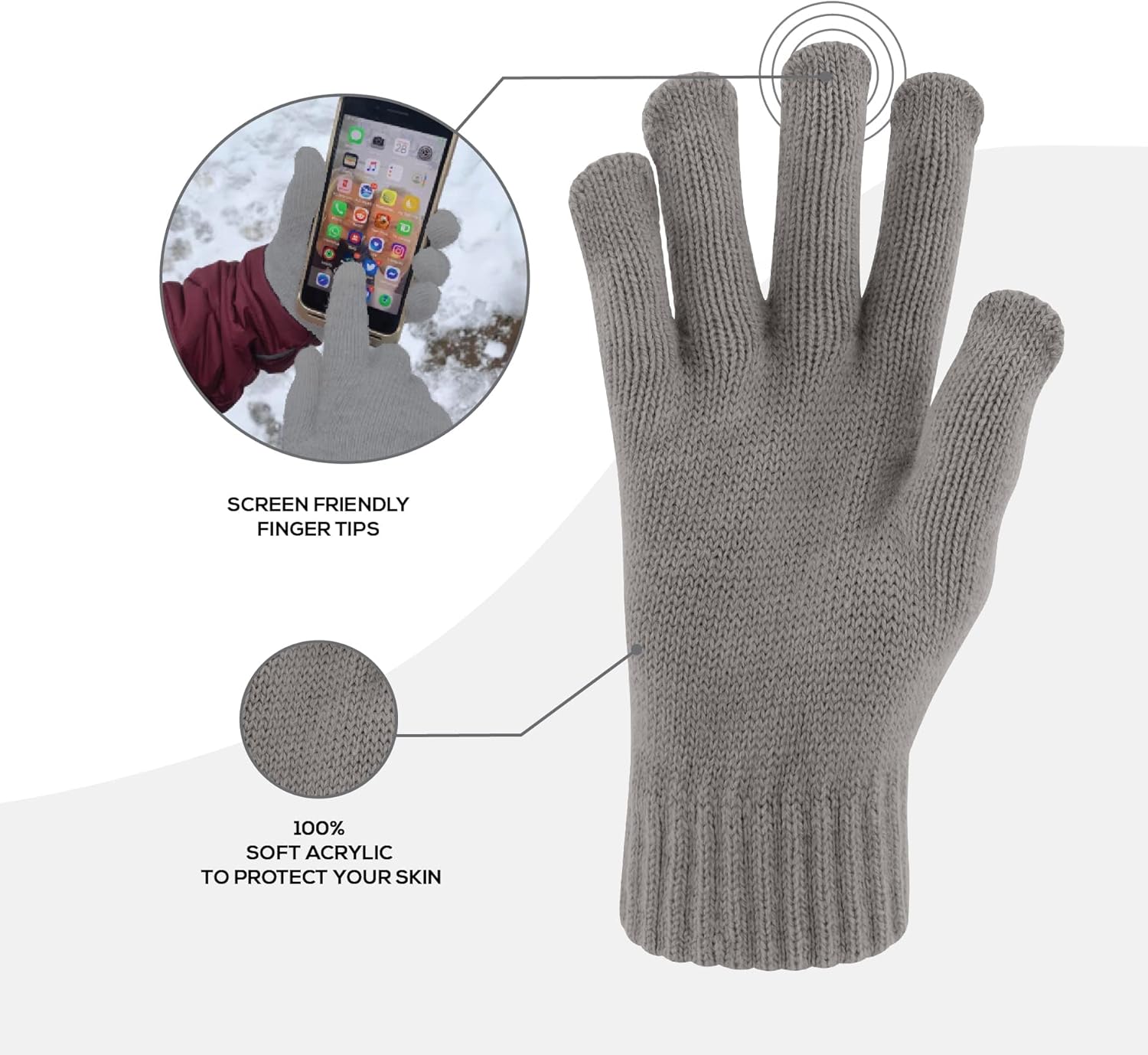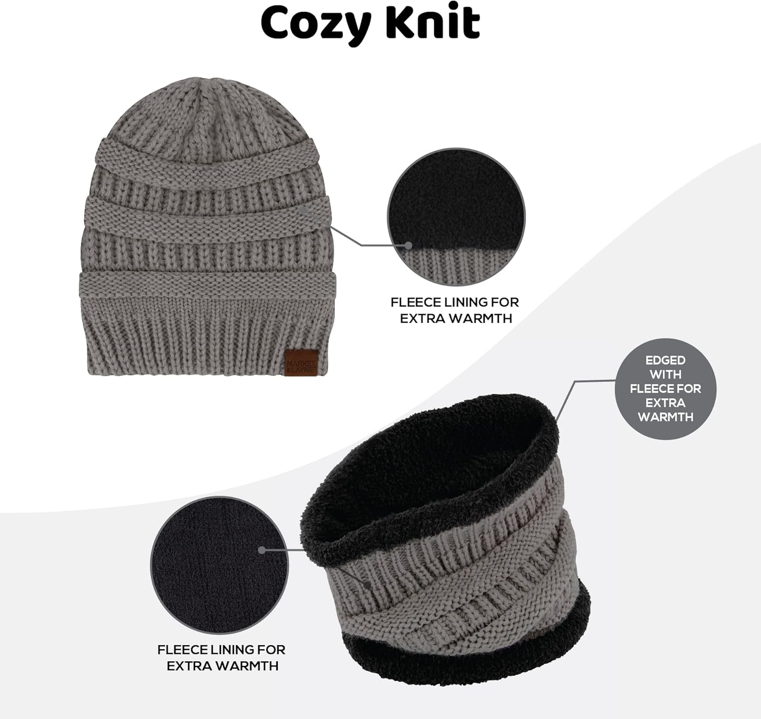 100% Soft-Spun Acrylic Imported Hand Wash Only 3 PIECE COMPLETE WINTER SET: This winter hat and scarf set includes: Beanie Hat, Scarf, and touch screen friendly gloves. Hat and scarf set suitable for men and women. Use these winter gloves and scarves for women or men to keep you warm and safe throughout those cold winters. QUALITY AND WARMTH: The winter beanie and scarf are made of 100% soft-spun acrylic with a skin-friendly fuzzy Poly Lining for Extra Warmth. Womens winter hat scarf and gloves set, will keep you cozy and warm every day and enhance the cold outdoor activities. SCREEN FRIENDLY: Special touch screen fingertips included to help you enjoy your time with your favorite touch screen device, texting easy while keeping your hands warm. ONE SIZE FITS MOST: This winter scarf set can be stretched and suitable for most people, thanks to the comfortable stretch that gives both mens and womens a custom fit. These gloves and hat set will come to great use for all adults in the family! FASHIONABLE: Beanie hat, scarf and gloves, matches with any outfit. Suitable for any cold weather winter outdoor activities like walking your dog, running, cycling, skiing, skating, sledding, traveling, hiking and so on. Enjoy womens hats and gloves.
