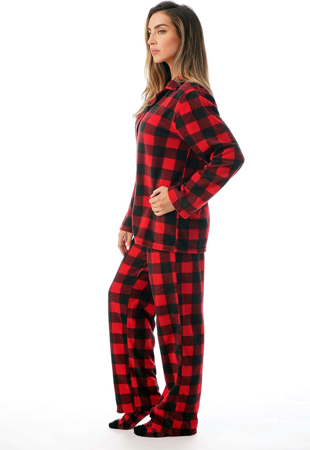100% Polyester Button closure OH SO COZY: Keep comfortable warm whenever the cold weather creeps in with the #followme super soft 3-piece microfleece pajama set for women. It comes with a comfy button front top, matching pajama bottoms, and a pair of warm fuzzy socks all made using non-irritating 100% polyester microfleece. CUTE & FUN: Counter the dreary weather with a pop of color and burst of pretty prints. These women’s microfleece pajamas are available in eye-catching design options that instantly perk up your spirits, bring on the style with the notch collar top, and make a great holiday gift for that special someone. ALL DAY COMFORT: No stuffy fabric. No restrictive fit. We’ve designed the micro fleece pajama set with a loose fit to allow for extra-comfortable movement, and high-grade polyester that allows your skin to naturally breathe and keep uncomfortable sweating at bay. Choose from our wide size range to beautifully complement your frame whether you’re petite, plus sized, or anywhere in between. WASHES WELL: With its shrink-resistant material and colors that don’t run, this 3 piece button front pajama set remains in great condition even after numerous stints in the wash. Treat yourself to winter pajamas for women that will still be helping you beat the cold years down the line. VALUE FOR MONEY: #followme prides itself on giving you the latest styling at the best value around. You’ll love the great attention to detail that has gone into making these fun jammies for women, and all at a price that your wallet will relish. Click ‘Add to Cart’ now!