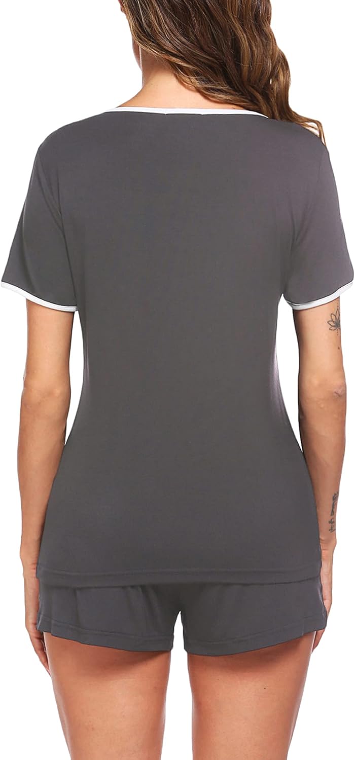 95% Rayon, 5% Spandex Imported Drawstring closure Hand Wash Only ?Material: Pajamas sets are made of comfy & light fabric. Sleepwear set is cool, breathable and soft to the touch, will keep you comfortable all night long ?Two Piece Pajama Set: Sleepwear with tops and shorts has a loose fit for added comfort. Extra soft, comfy, and breathable sleepwear set for bedtime ?Short Sleeve Tops: Sleep shirt features round collar and chest pockets. Classic and convenient designs make this pjs sets more stylish and unique. Great nightwear, loungerwear that feels incredibly comfy and keeps you cool during hot nights