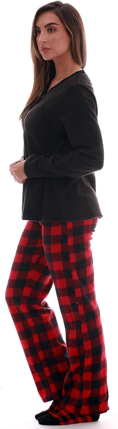 100% Polyester Button closure Hand Wash Only SLUMBER IN BLISS: Treat yourself to uber comfort whenever you hit the sheets. You’ll love the feel of the 100% polyester microfleece fabric. Ultra-soft, this women’s pajama pant set is a recipe for restful sleep and incredible comfort as you lounge away. CHILL IN STYLE: Make sleepy time pretty time. We’ve combined a stylish button front henley top, faux fur look, printed sleeping bottoms, and a printed yoke to match the pants. The cute jammies also come with matching socks to complete the look and keep you cozy from head to toe. A FIT FOR ALL: Whether you’re petite, plus size or anything in between, we have great-fitting nightwear to match. The micro fleece PJs come in S-3X to suit any size. And thanks to the semi-loose fit, you’ll have freedom to move without restrictions and experience enhanced comfort. CUTE GIFT IDEA: Looking for a unique present for her? To mark the holidays in memorable fashion? Treat them to the gift of ultra-soft comfort! This sleepwear/ loungewear set makes a great holiday item and is available in a variety of prints to suit just about any taste. GREAT VALUE: Just Love is all about giving you the latest fashion at the best prices around. Our ladies’ pajamas come with a total satisfaction guarantee; because leaving you with a smile is what we’re all about. Click ‘Add to Cart’ now to experience luxurious softness risk-free!