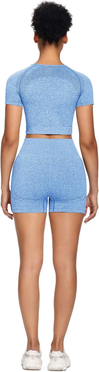 Hand Wash Only Size : Please refer to the size chart of the description image before you purchase.If you prefer a "Loose Fit", please order 1 size up. Material : Seamless and Dry technology.More comfortable & Non see through & Ultra-stretch fit(Enough thickness with breath ability).This workout outfits 2 pieces set is perfect for gym,exercise, sport,yoga, fitness, any type of workout, any season or daily use. Tummy Control + High Waist + Squat Proof : Feature highest quality stretch material that contours your curves and streamlines the natural shape of your waist.Plus a butt lifting feature for a natural looking in the back.No See through certify and Enough thickness with breath ability and.Avoiding your gym embarrassment! Packing : 1 Short Sleeve Crop Top +1 Workout Shorts Service : Contact us 7 x 24 hours with any questions and 30 days free return.
