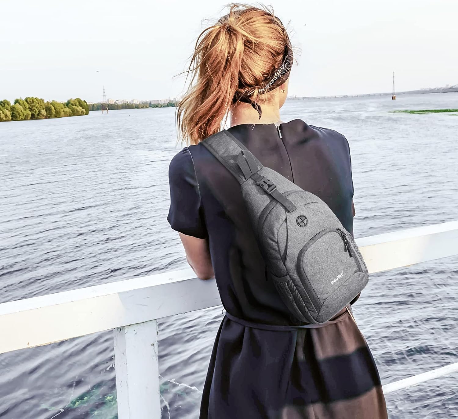 RFID Protection: Back hidden RFID signal blocking pocket, to protect your ID card, bank card, or phone from getting scanned and stolen. And protect your information security in public places. Multifunctional Pocket: The size of the sling backpack is 7.5 x 4 x 15 inches (L x W x H), good enough to accommodate the items you need daily outdoors. A hidden security pocket on the padded back can hold your passport. 2 side pockets fit a water bottle or folding umbrella. Reversible and Breathable Shoulder Strap: Designed with one right / left easily switchable and adjustable padded strap and breathable back pad for your comfort. The adjustable strap range is 25.9 - 46.5 inches / 66-118cm. The shoulder strap pouch can hold the phone screen size under 7 inches easily. Superior Material: This sling backpack is made of upgraded thick tear-resistant and water-resistant polyester fabric. Bar-Tacks Processed at the seam will provide extra strength and long-lasting performance. Durable two-way SBS metal zippers are abrasion-resistant and ensure secure closure. Multipurpose Daypack: This crossbody backpack is the perfect companion when you are out. Vibrant colors and can be used by different ages people, also a perfect gift for friends and family members. Fit for men, women, children, and adults. Suitable for travel, day hikes, daily walk-around, cycling, excursions, sports, school, camping, and shopping.